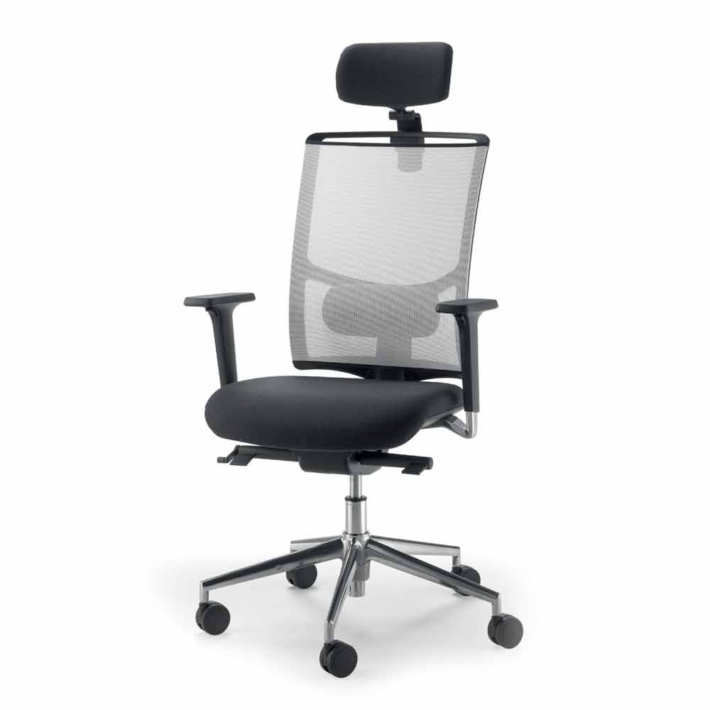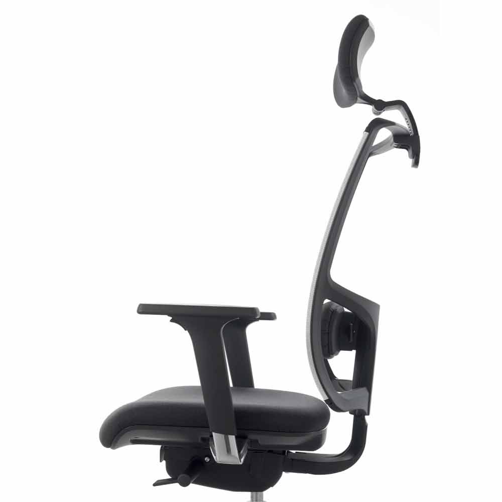 Dotata inoltre di un poggiatesta portante realizzato in nylon PA6 caricato al 15% con fibra vetro, colore nero, regolabile in altezza e profondità per ricercare la migliore posizione, completo di un' imbottitura in poliuretano espanso ricavato da stampo, ignifugo e rivestito.