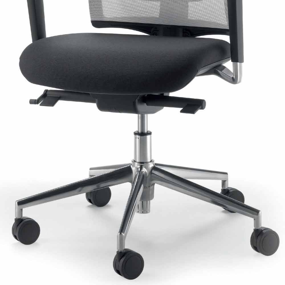 Lo schienale è regolabile in altezza da seduto tramite un meccanismo Up-Down, con corsa 70 mm e 8 posizioni di blocco.