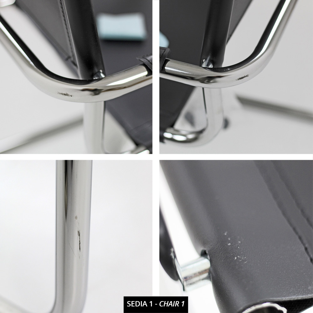 Sedia per Sala Congressi o per Sala Riunioni in Cuoio Nero e Metallo – Cirillo1/2