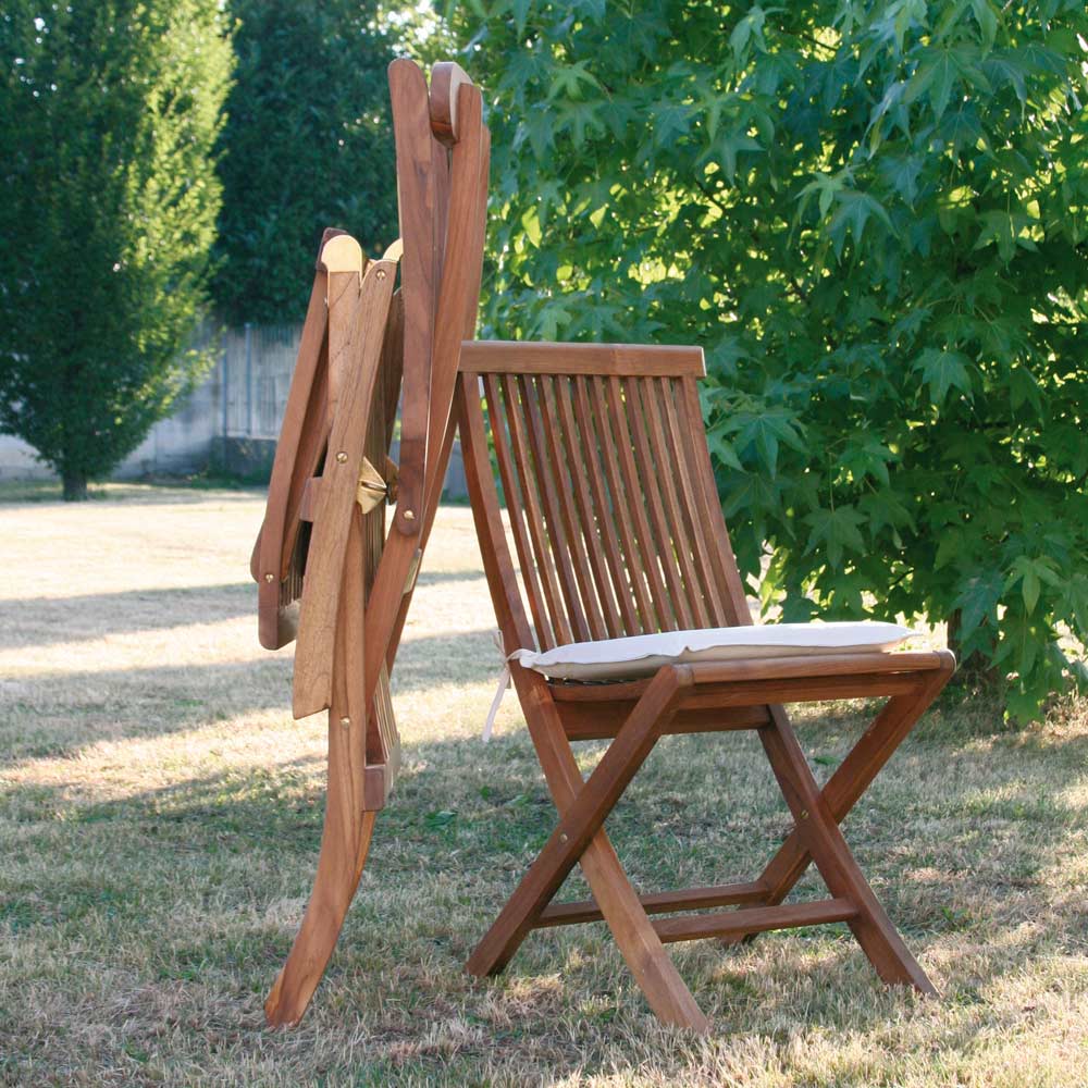 Sedie pieghevoli per esterni, con cuscinetto crema idrorepellente.