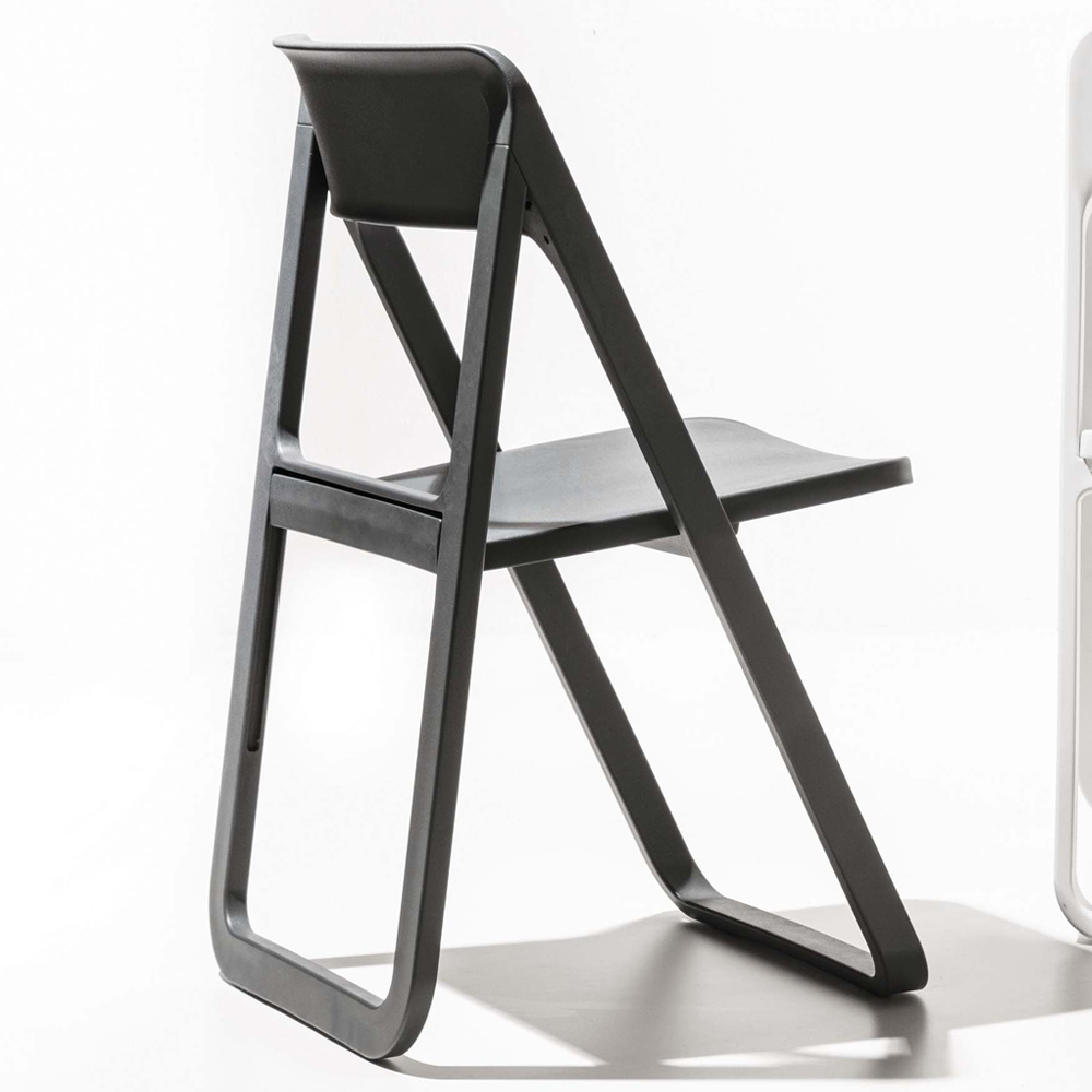Sedia moderna realizzata in polipropilene colorato e caratterizzata dalla particolare struttura pieghevole che la rende ideale per arredare con personalità e originalità qualsiasi zona domestica o contract. Un complemento dall'estetica creativa e dalle forme essenziali pensato per donare colore e vivacità agli ambienti offrendo una soluzione particolarmente funzionale grazie alla possibilità di piegarne la struttura occupando così uno spazio minimo quando non utilizzata.