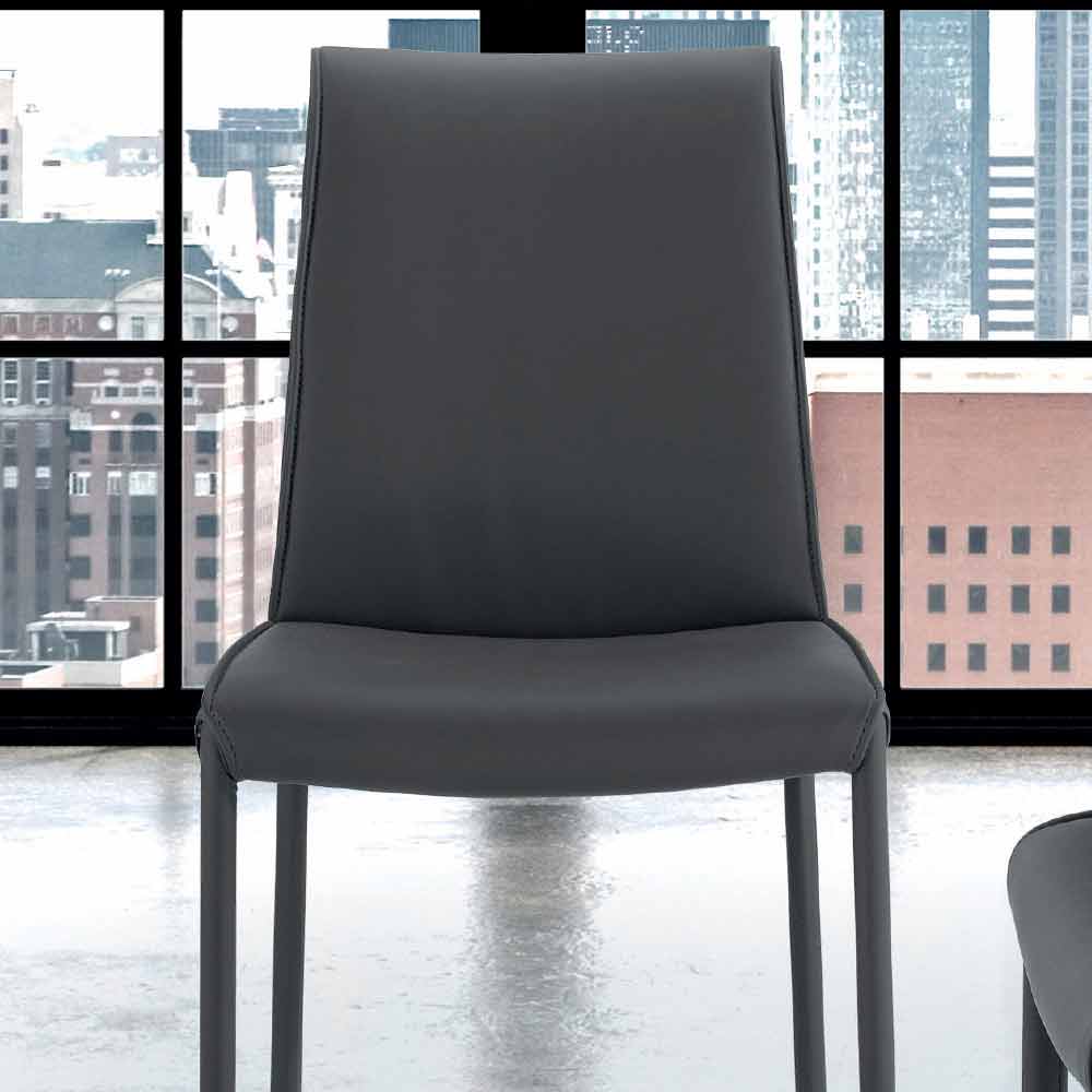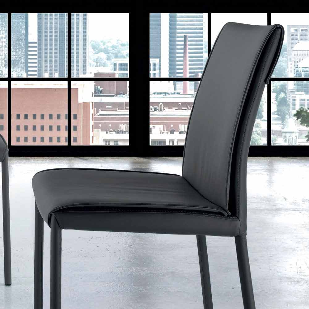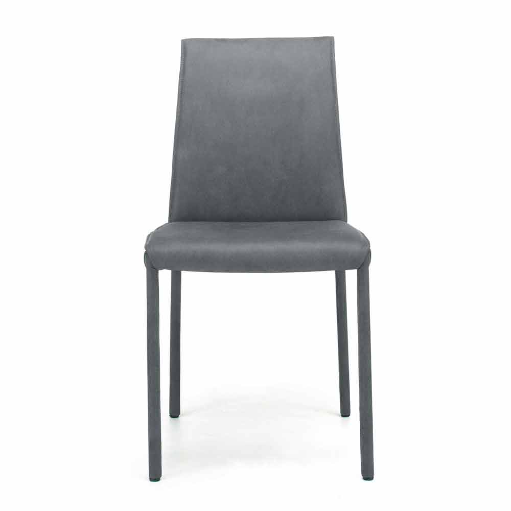 Sedia imbottita per sala da pranzo completamente rivestita in tessuto, pelle, velluto o ecopelle; prodotta artigianalmente in Italia.