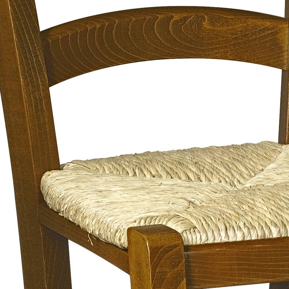 Sedia da pranzo con struttura in rovere antico e seduta impagliata a mano interamente realizzata in Italia.