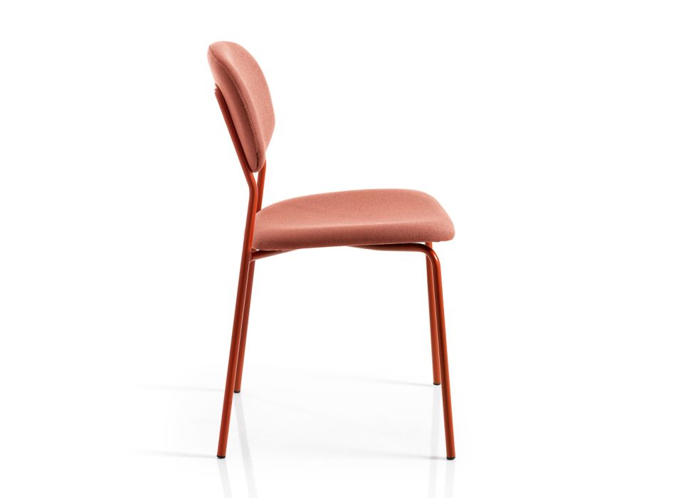 Con la sua silhouette ergonomica, questa sedia è l'incarnazione del comfort. Le gambe in metallo, robuste ma eleganti, sostengono il design sinuoso della seduta, offrendo stabilità senza compromettere l'estetica. Il contrasto tra i colori audaci delle sedute e le strutture sottili è una scelta consapevole che esalta la versatilità del design, adattabile a una miriade di ambienti interni.