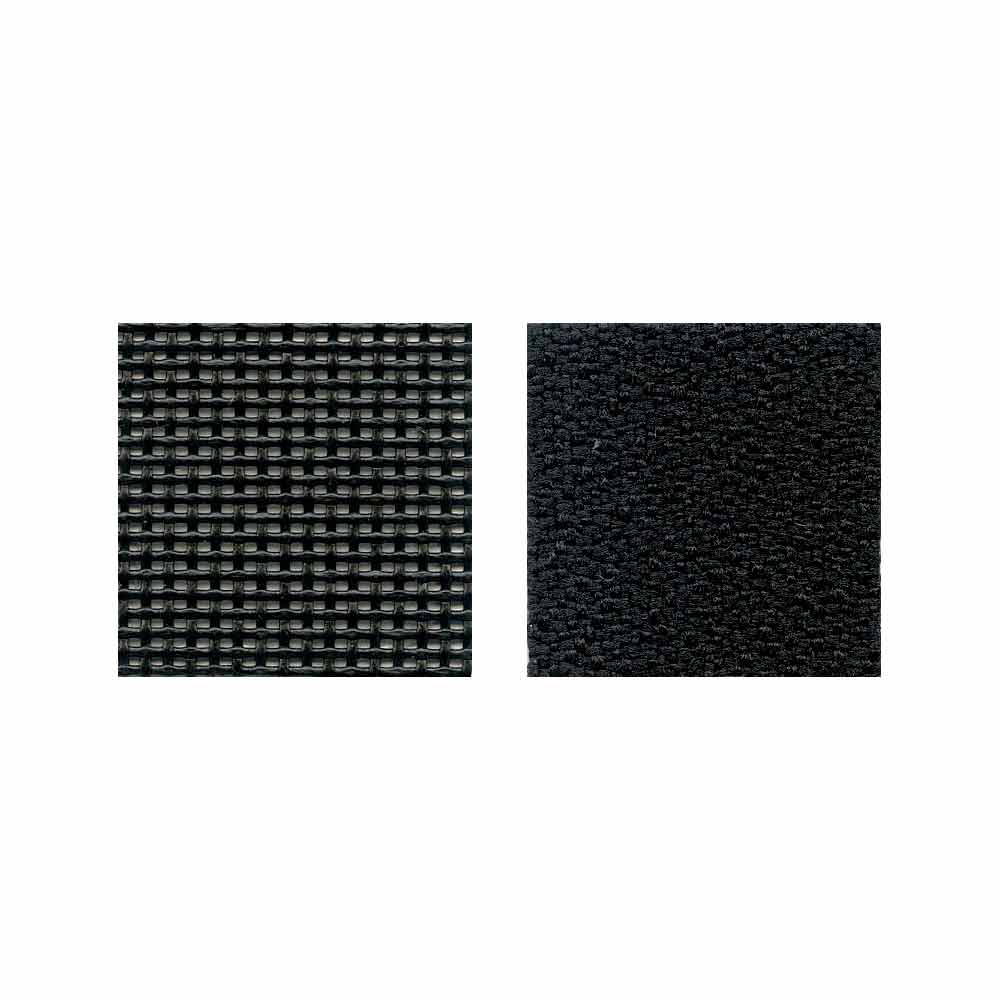seduta imbottita rivestita in tessuto nero e schienale in tecnorete microforata nera.