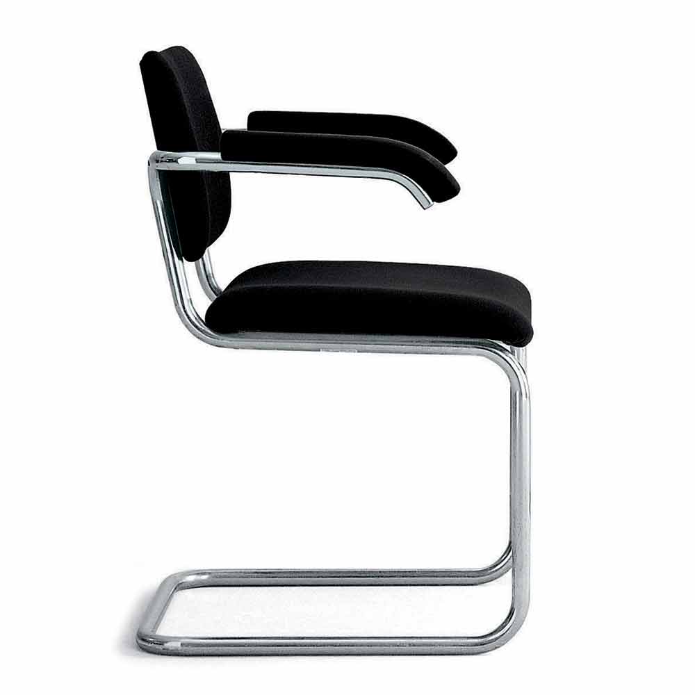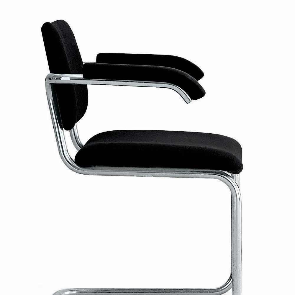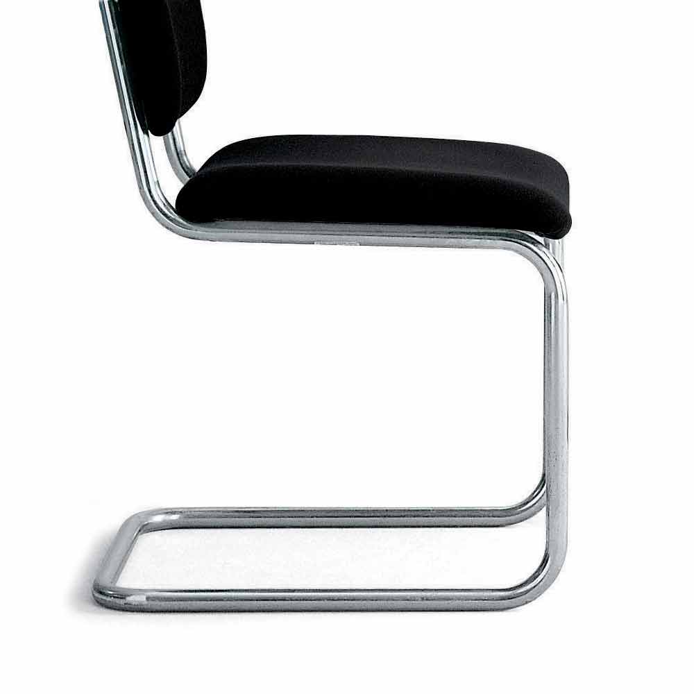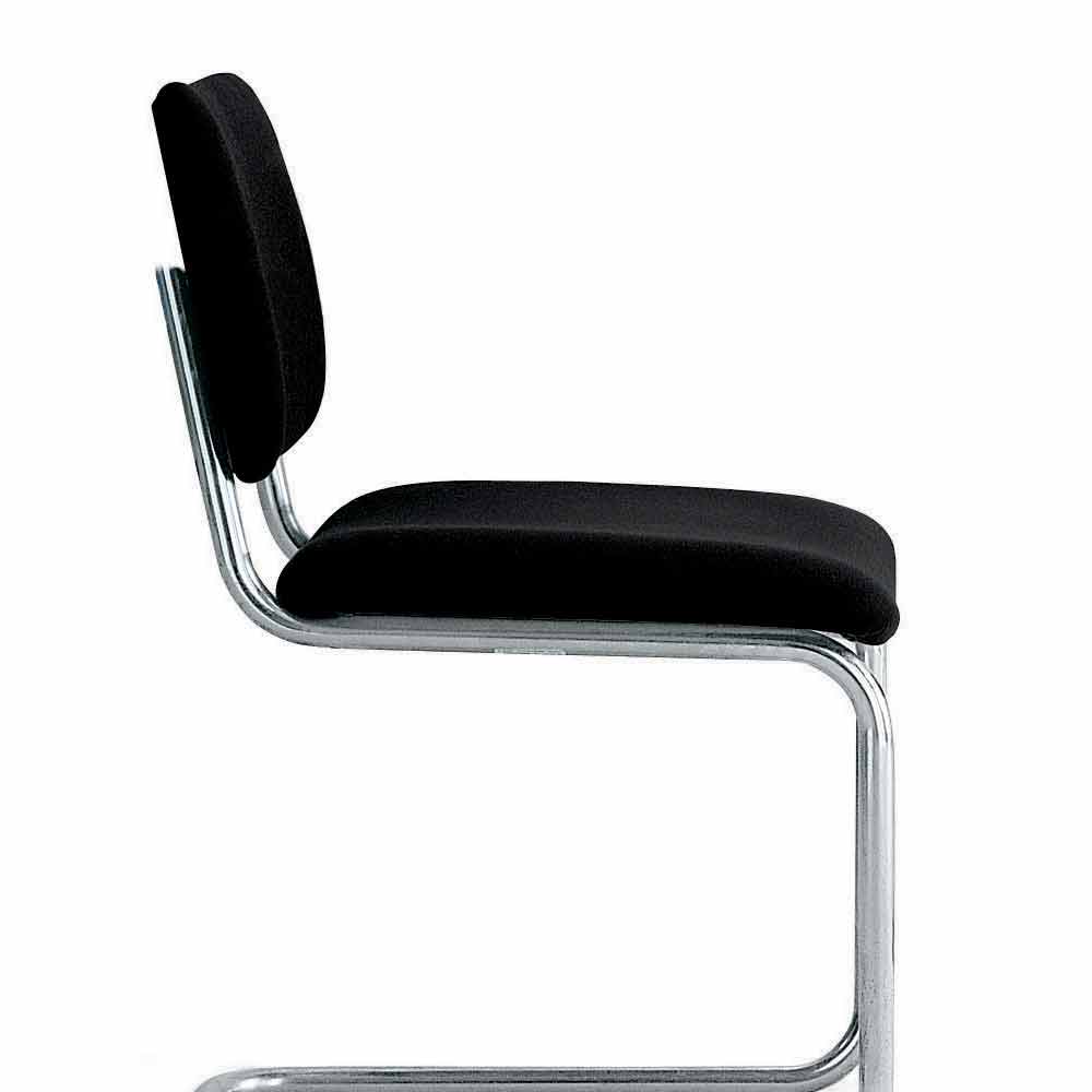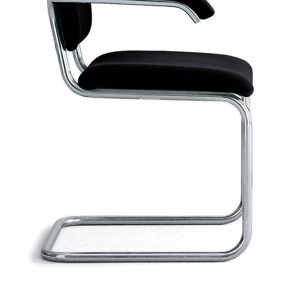 Sedia da ufficio con base a slitta in acciaio cromato realizzata in Italia.