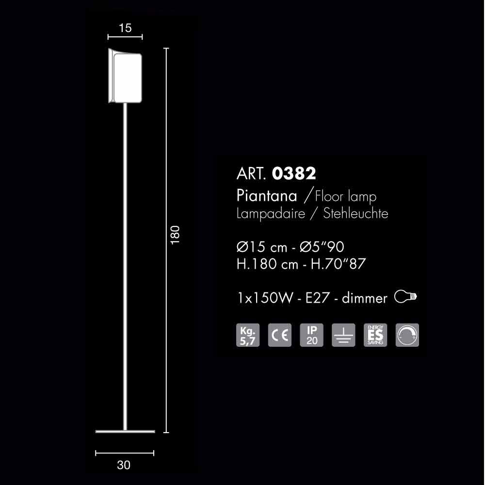 Selene Papiro lampada da terra di design in cristallo Ø15 H 180cm, made in Italy