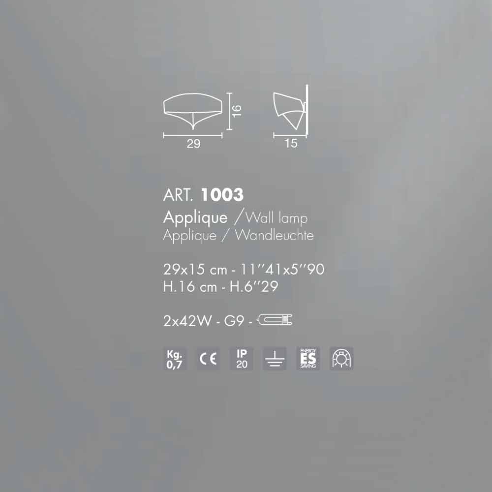 Selene Scudo lampada da muro moderna made in Italy 29x15xH16 cm