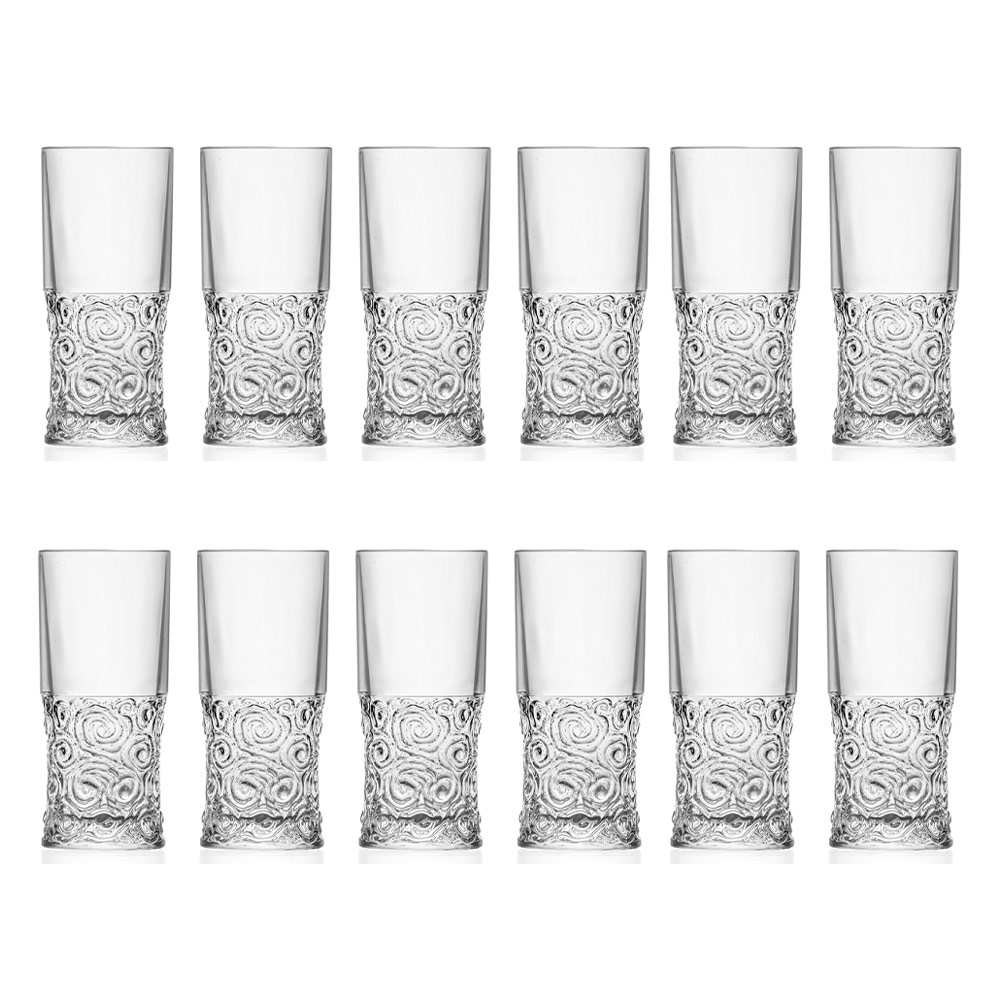 Bicchieri highball in eco cristallo con decoro rotondeggiante 12 pezzi made in Italy.