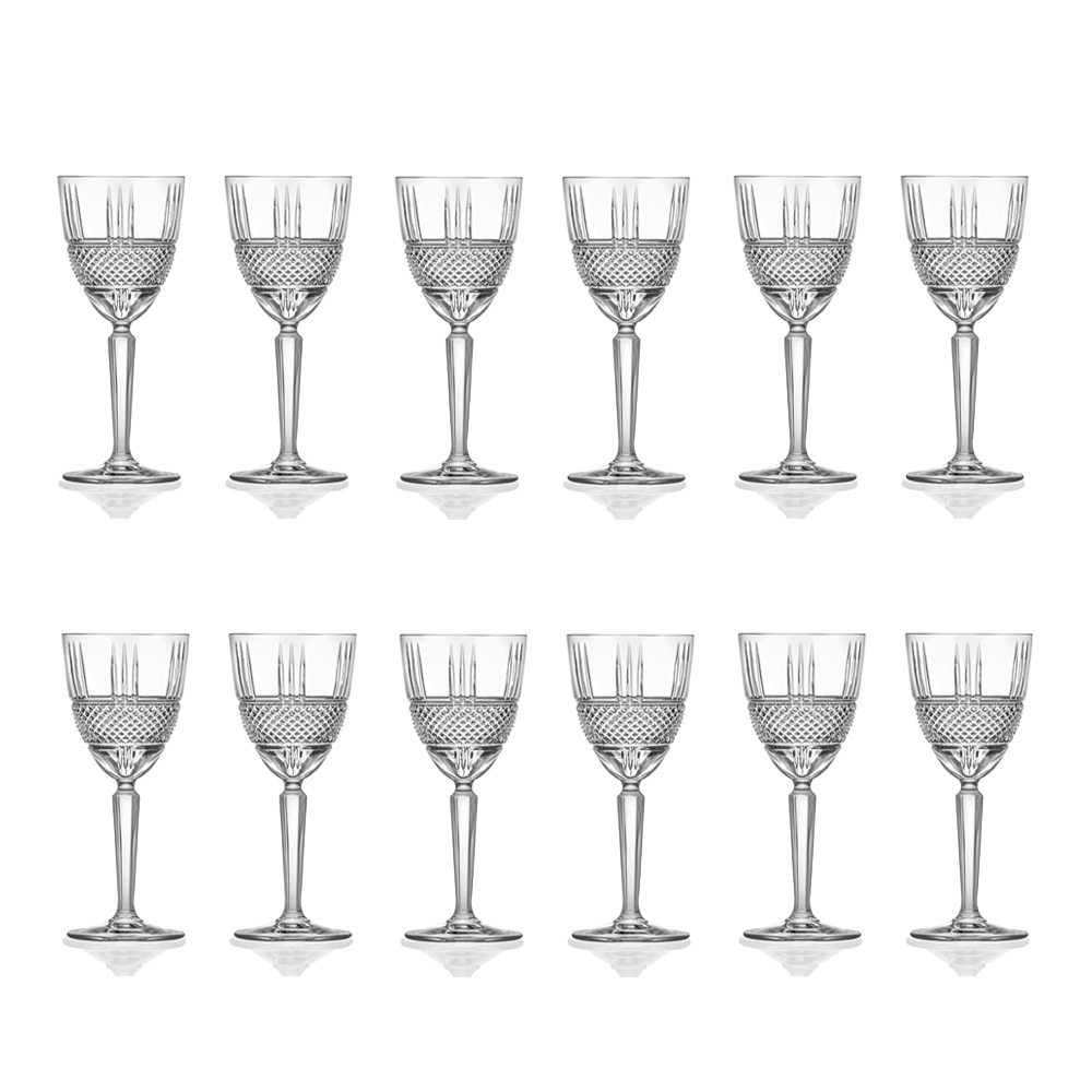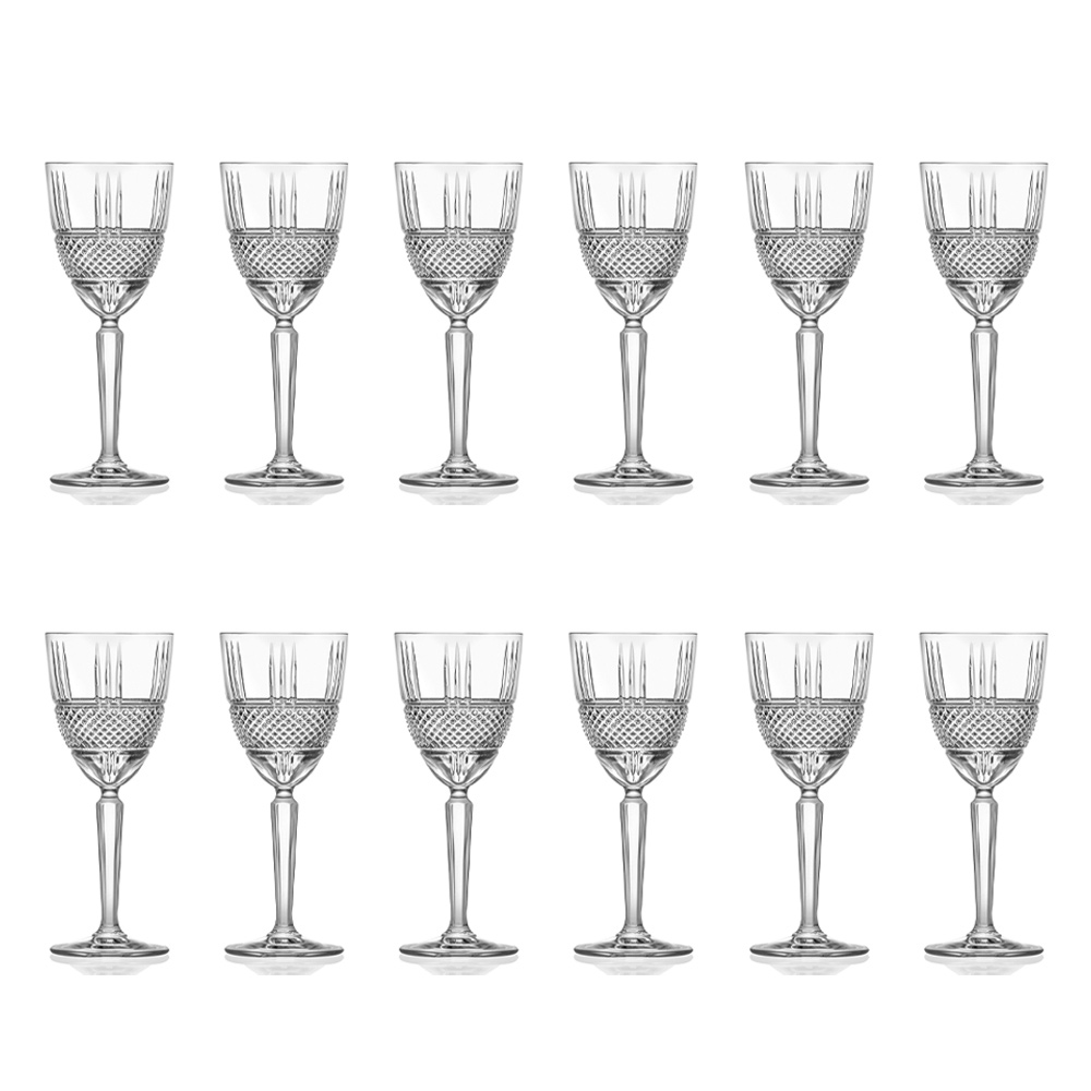 Servizio di calici da vino o acqua in eco cristallo intagliato a diamante, 12 pezzi made in Italy.