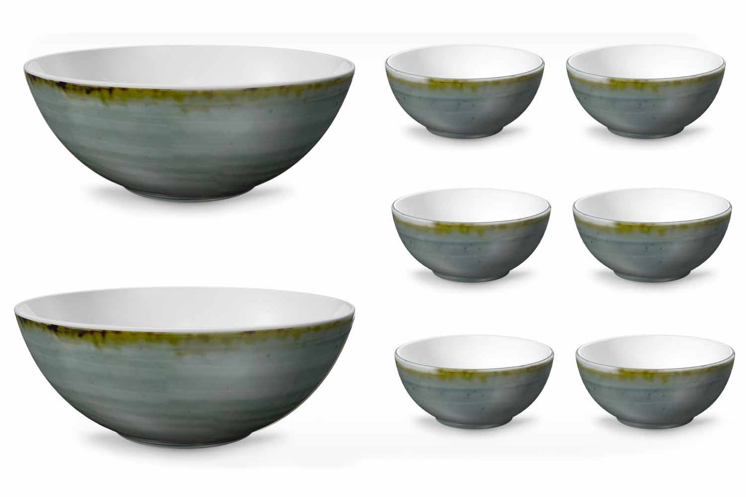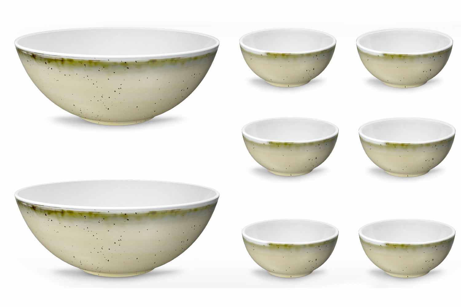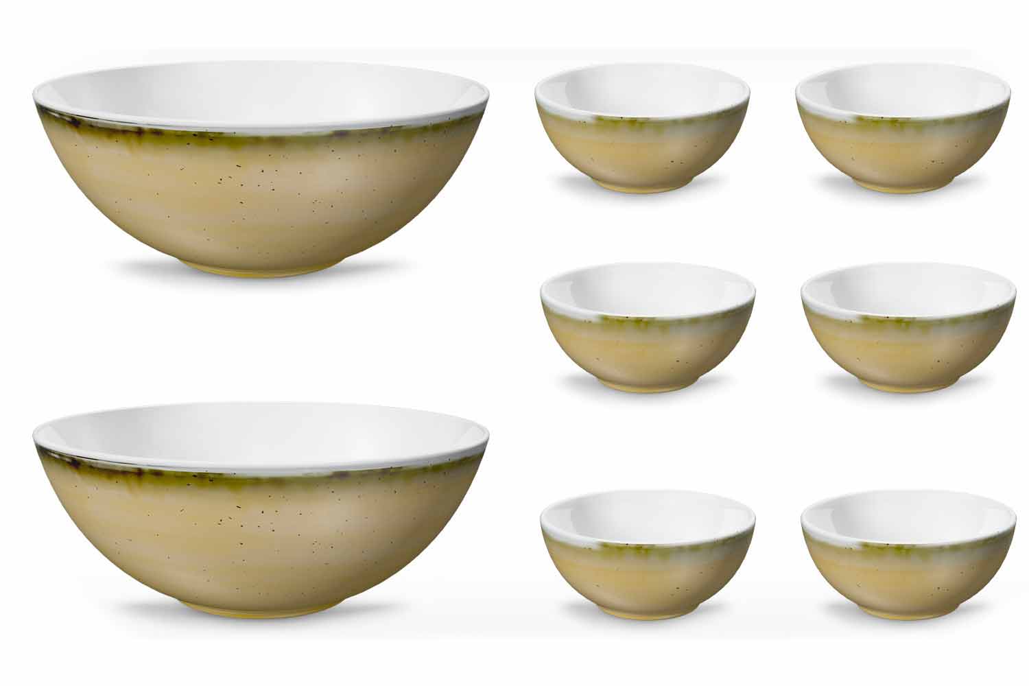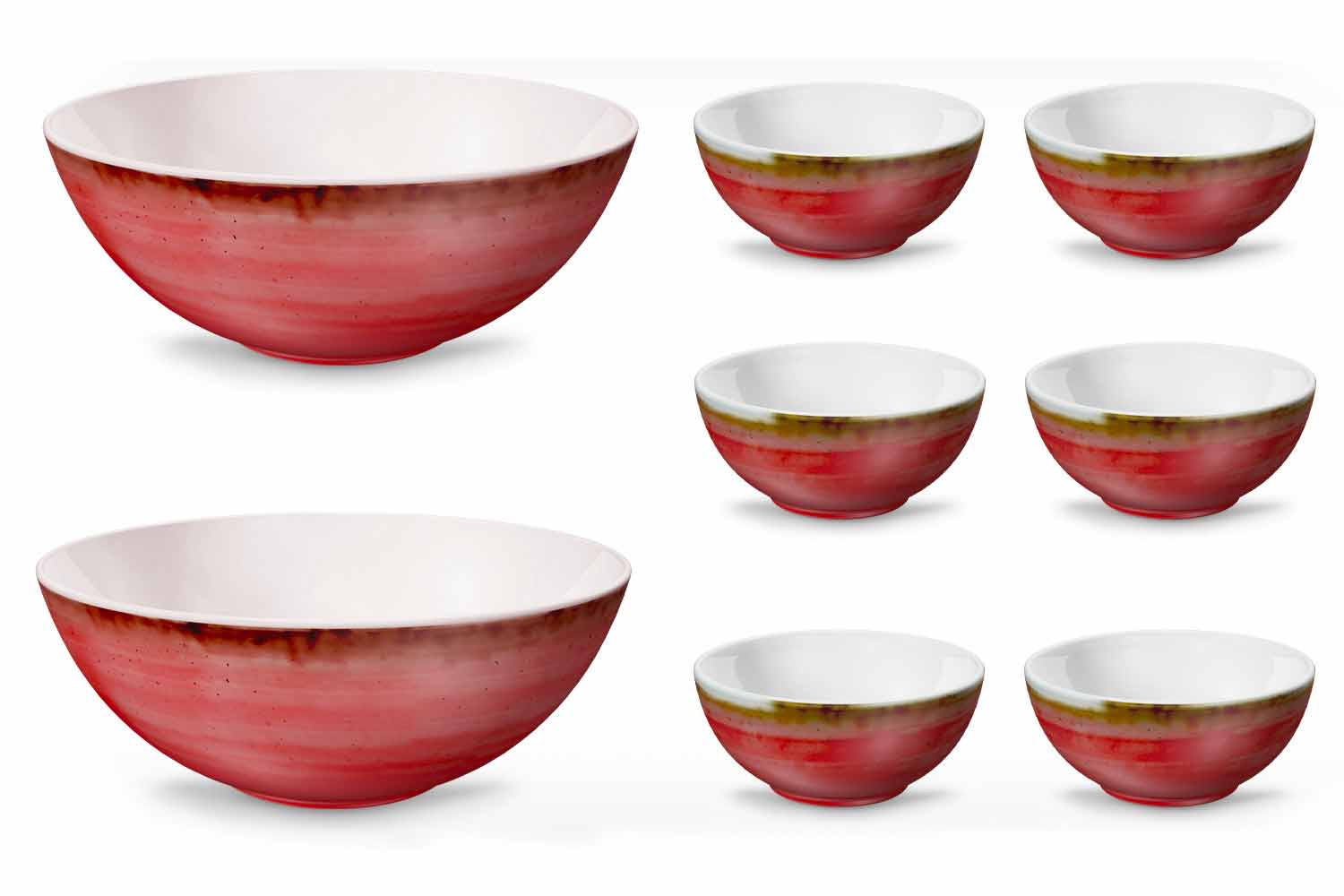 Servizio di coppette per gelato o macedonia di design moderno rustico in porcellana colorata, 8 pezzi.