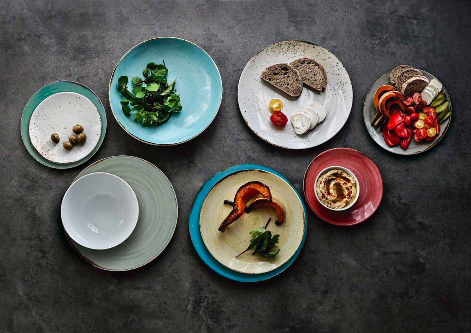 servizio di piatti da pranzo si presenta come semplice, elegante e raffinato, realizzato in calcomania in diversi colori, per uno stile rustico e versatile.
