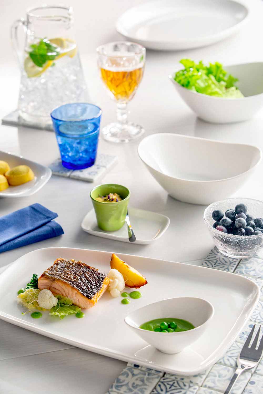 - Versatilità: i prodotti sono stati appositamente studiati per adattarsi ad ogni tipologia di cibo e di ambiente, così che possano essere utilizzati sia per antipasti, primi, secondi piatti o dessert, dando spazio alla fantasia e alla creatività. Una collezione versatile per combinazioni illimitate.