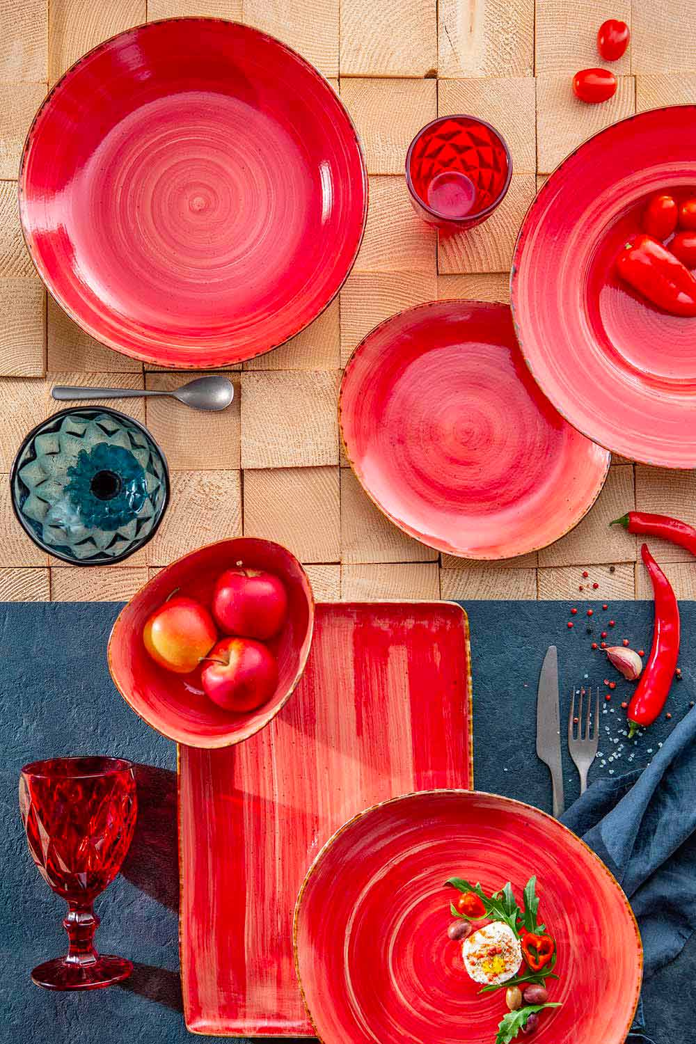 - rosso peperoncino: una colorazione piccante e affascinante in grado di esaltare le linee morbide e persuasive dei piatti. Una punta di rosso attraente e profonda, per avvincenti tocchi individuali nel servire.