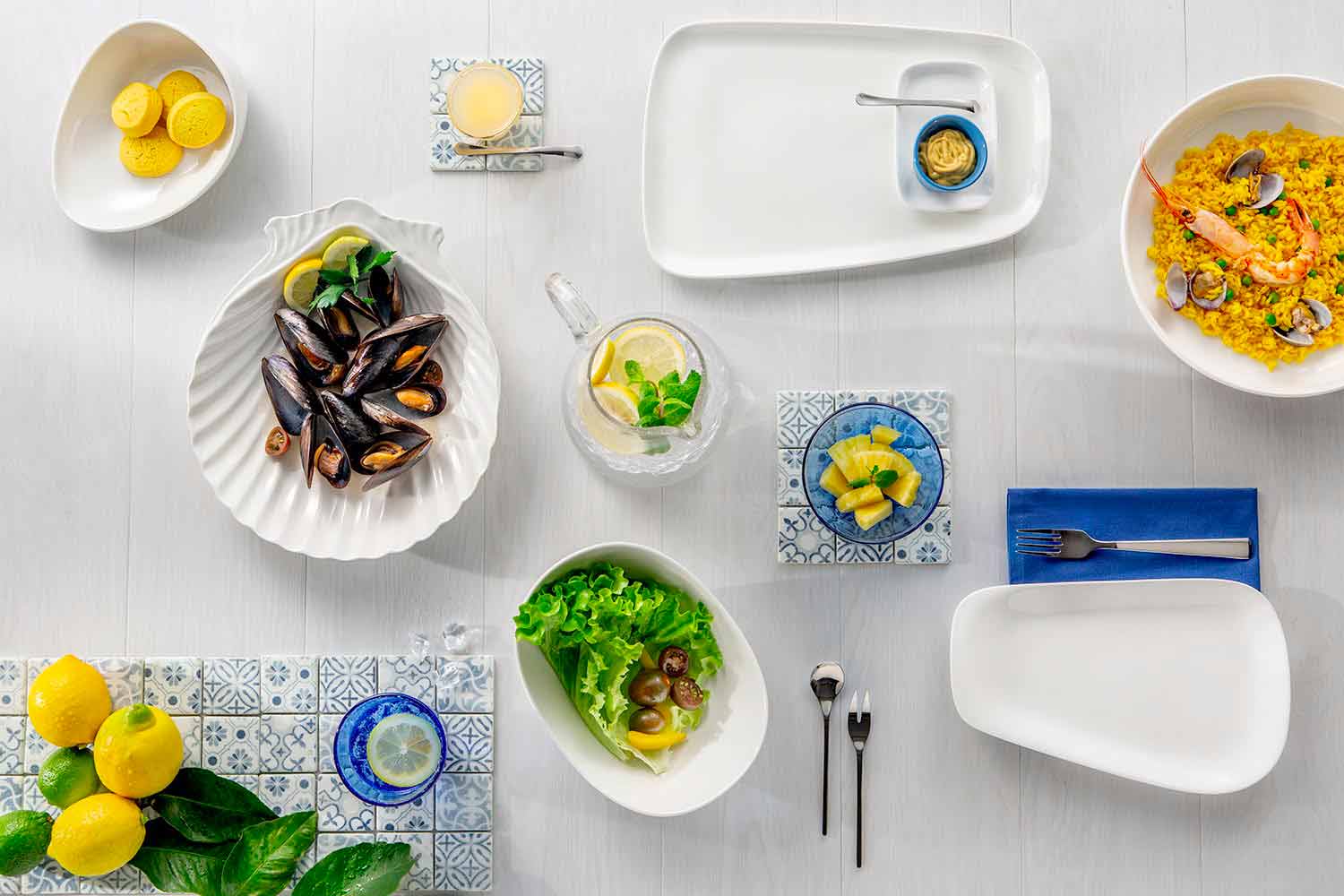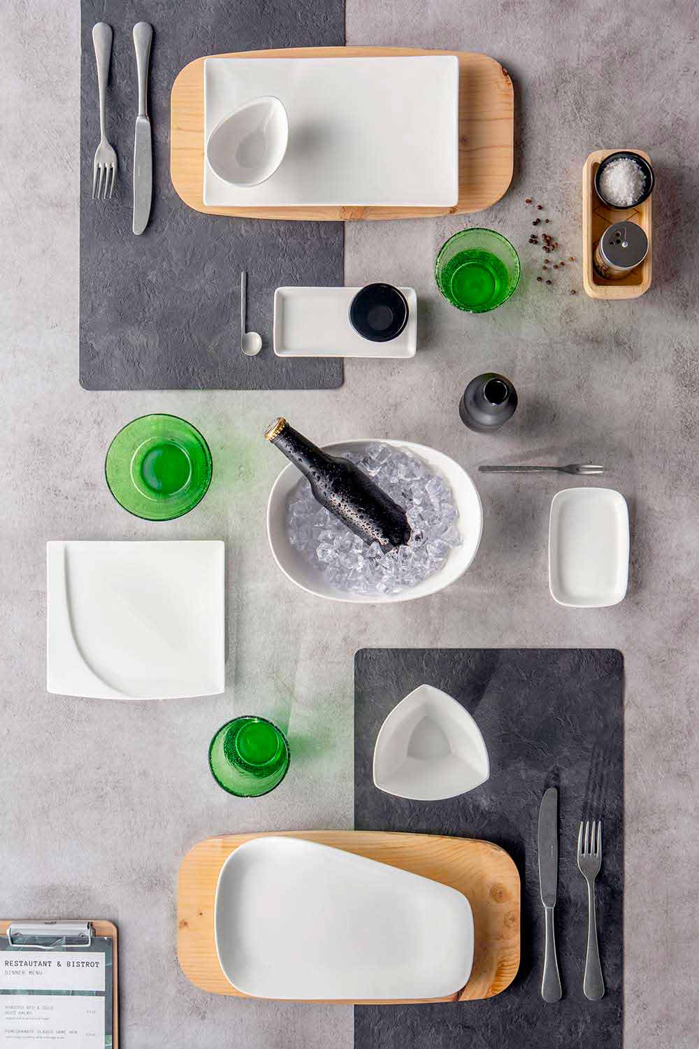 - Versatilità: i prodotti sono stati appositamente studiati per adattarsi ad ogni tipologia di cibo e di ambiente, così che possano essere utilizzati sia per antipasti, primi, secondi piatti o dessert, dando spazio alla fantasia e alla creatività. Una collezione versatile per combinazioni illimitate.