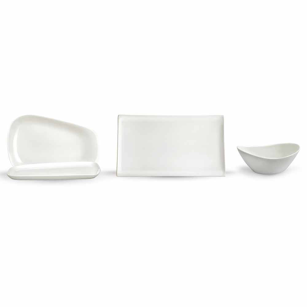 Servizio da portata in porcellana bianca avorio, design da tavola moderno ed elegante, 14 pezzi.
