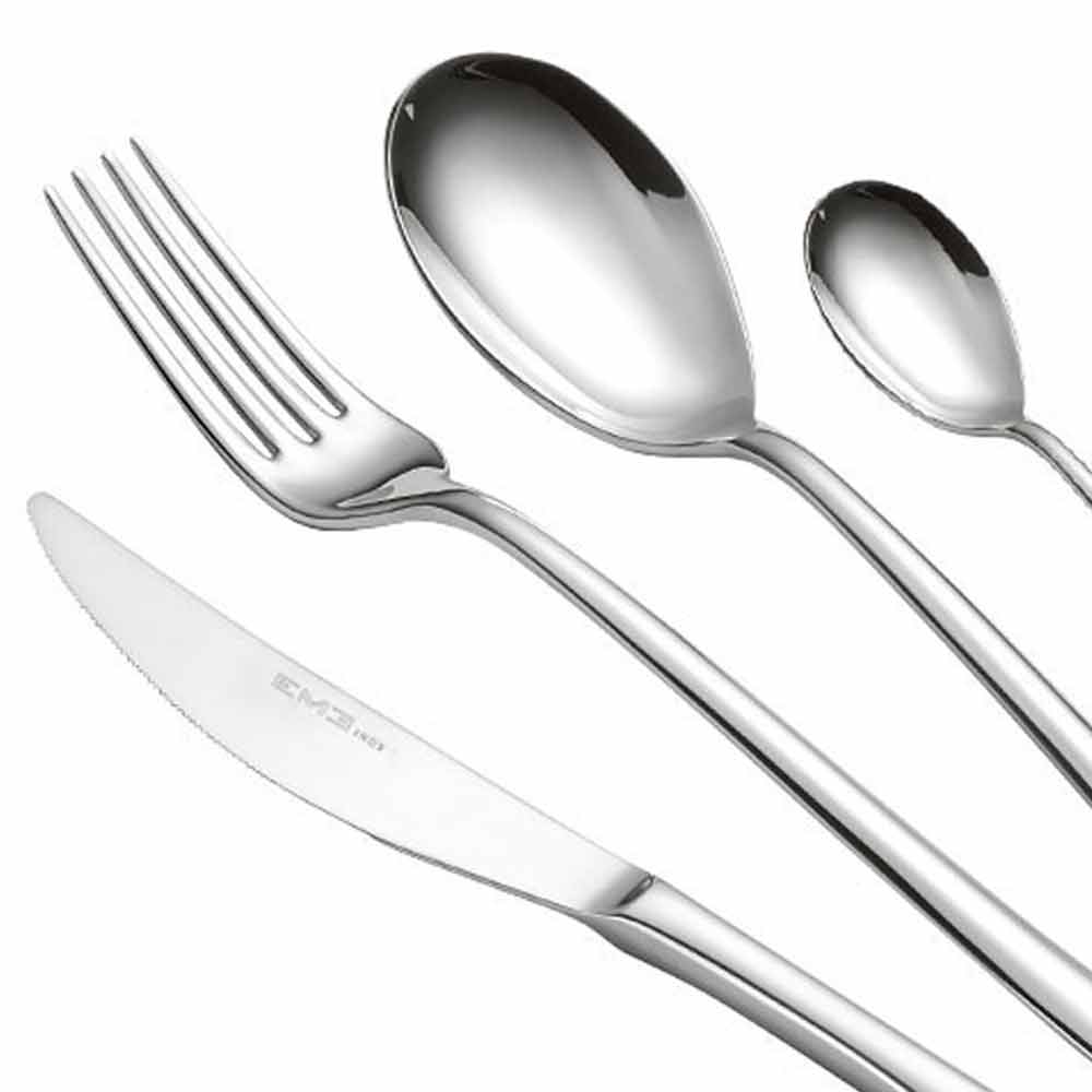 24 posate in acciaio inox con finitura lucida, design moderno made in Italy.