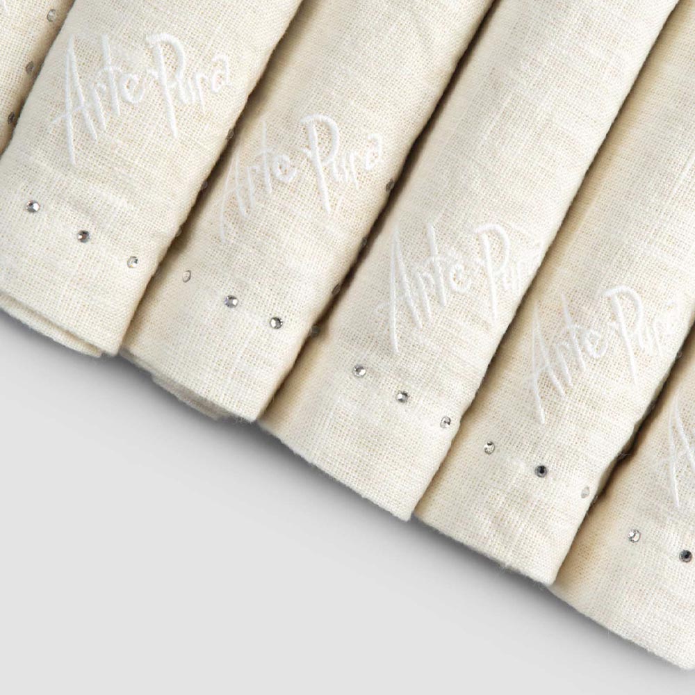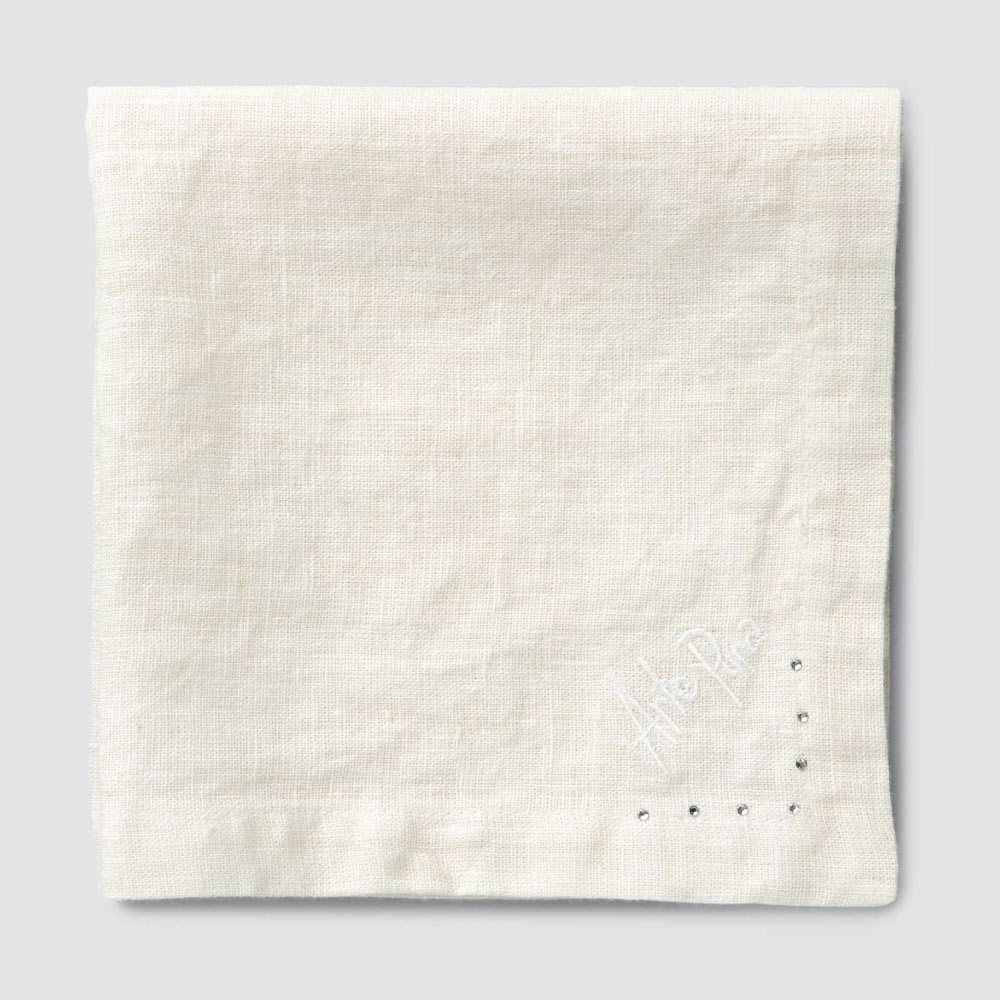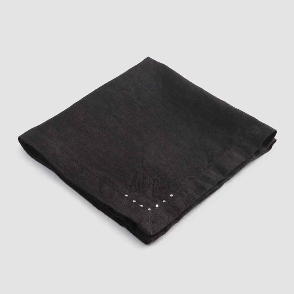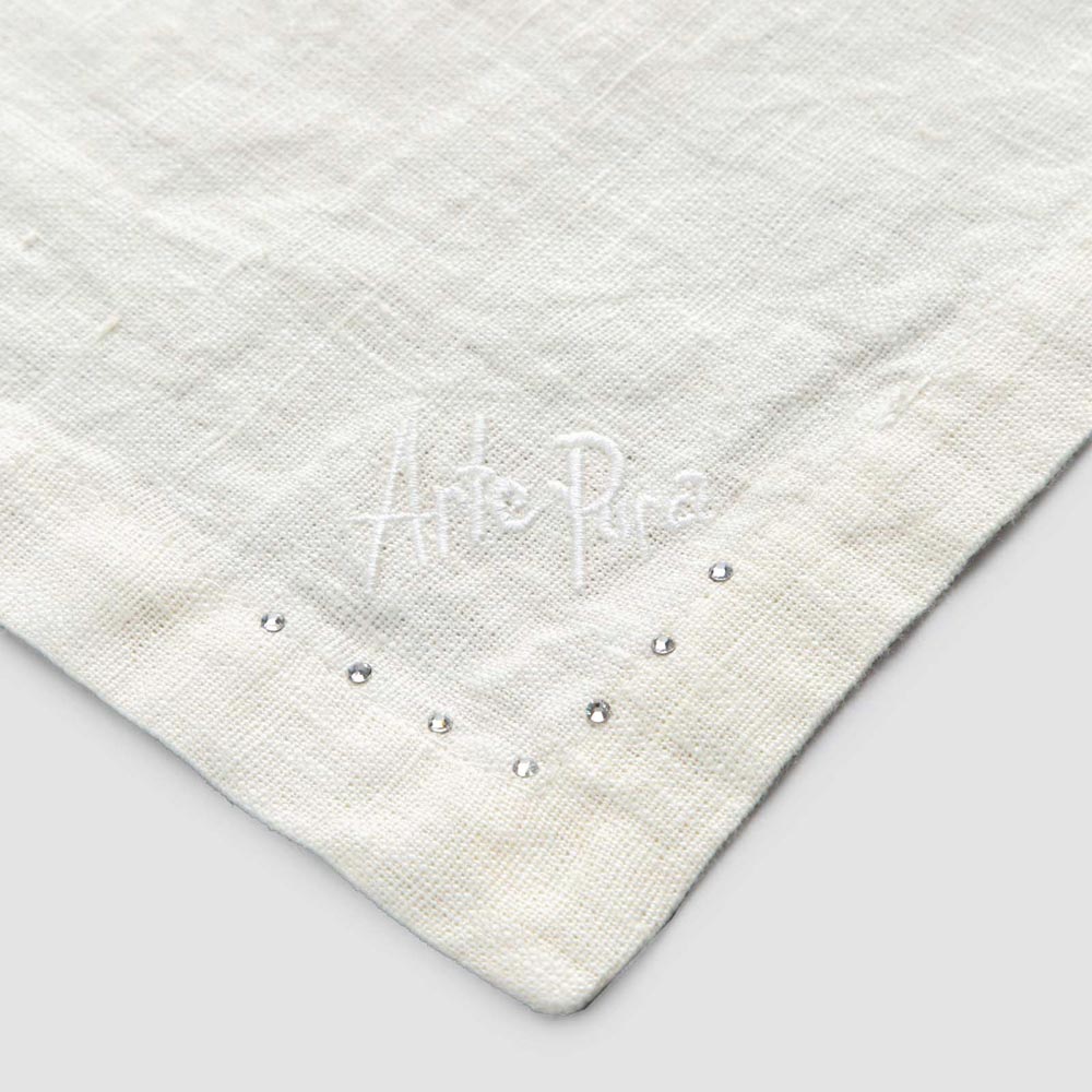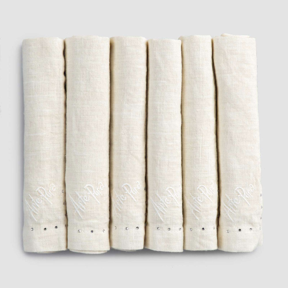 Servizio di tovaglioli in lino nero o burro con cristalli, 6 pezzi di lusso made in Italy.