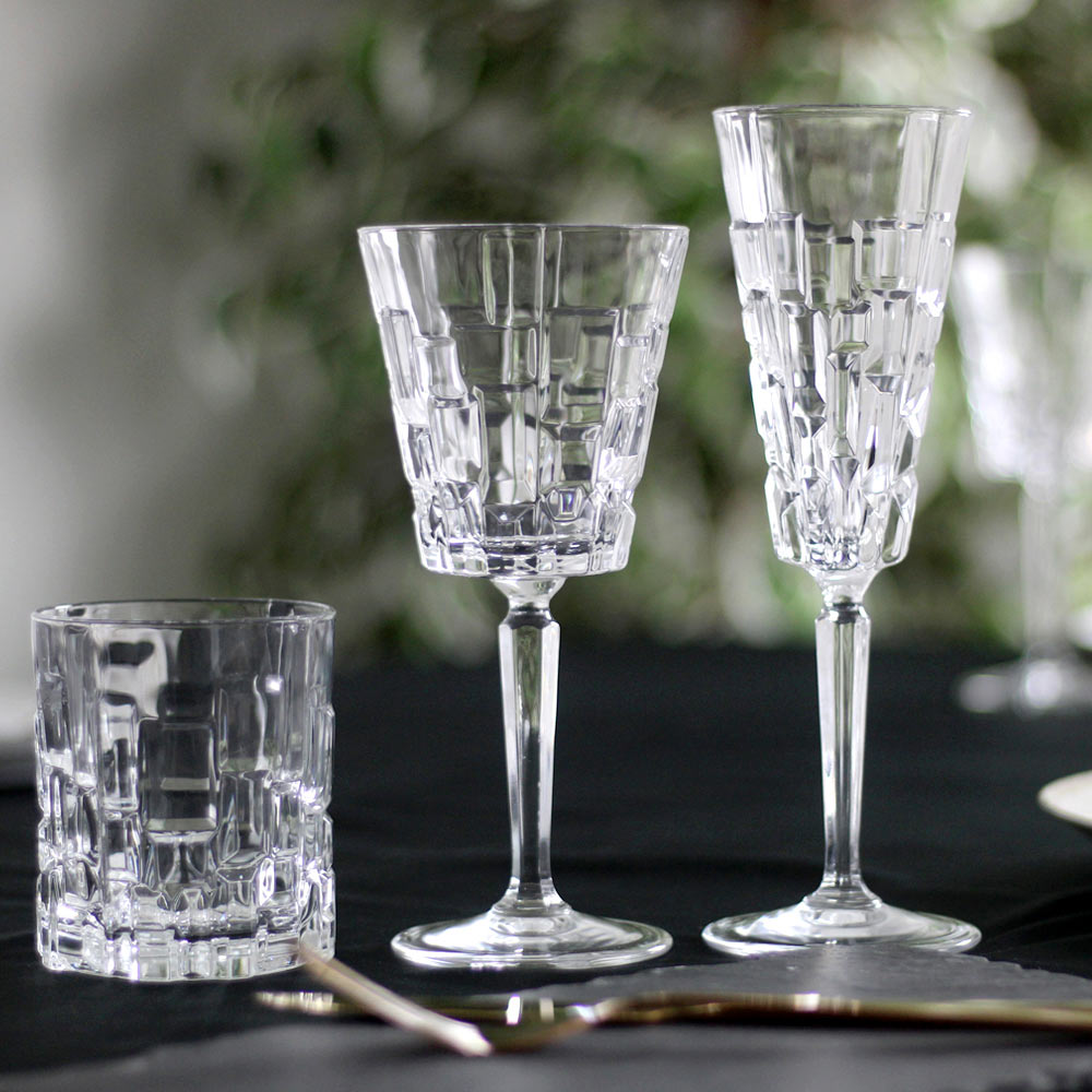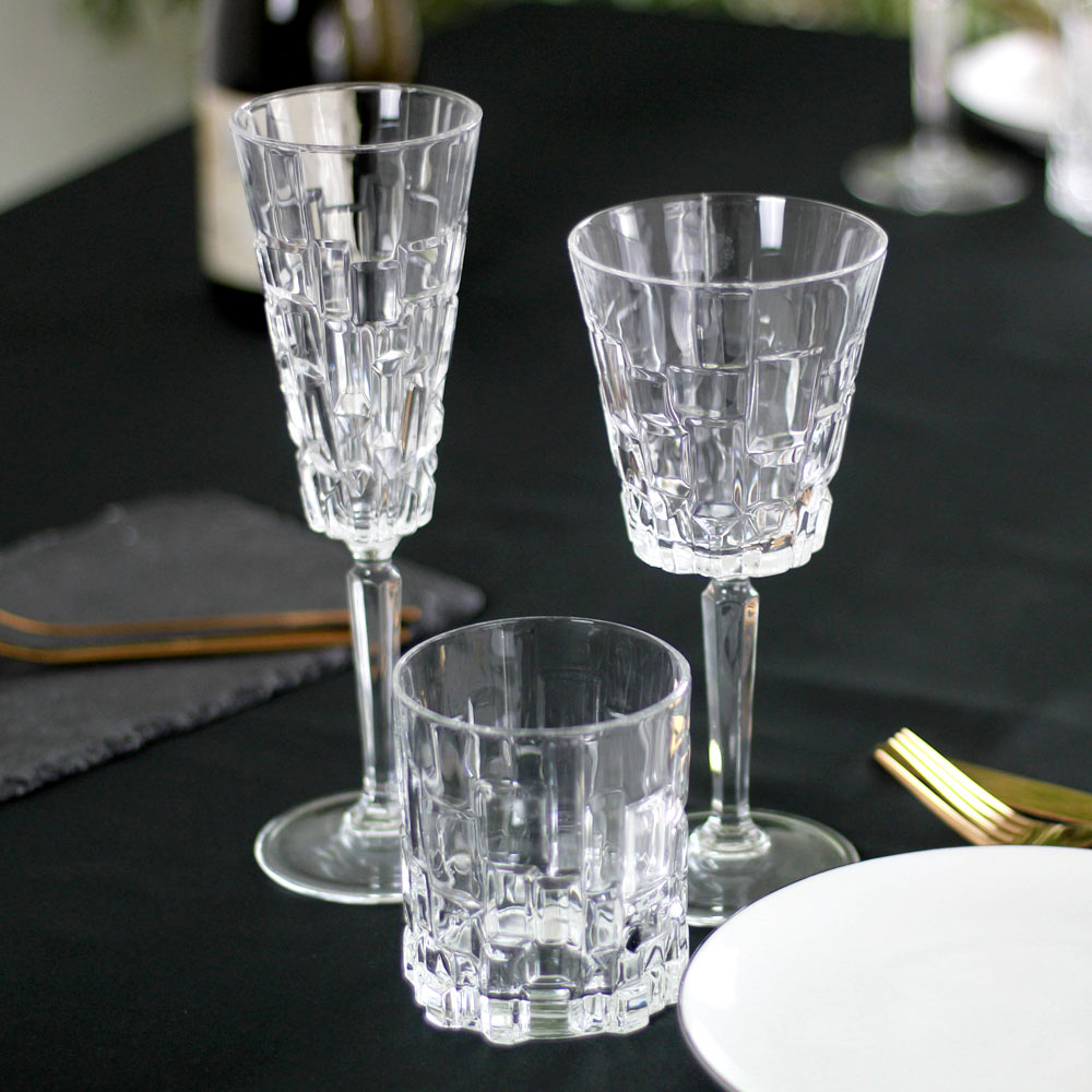 I calici, dallo stile moderno e sofisticato, sono caratterizzati da un originale motivo a rete di quadrati interconnessi. Perfetti per impreziosire la tua tavola con un tocco di stile unico, uniscono bellezza, resistenza e praticità.