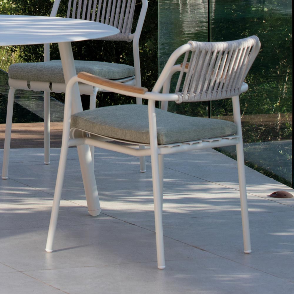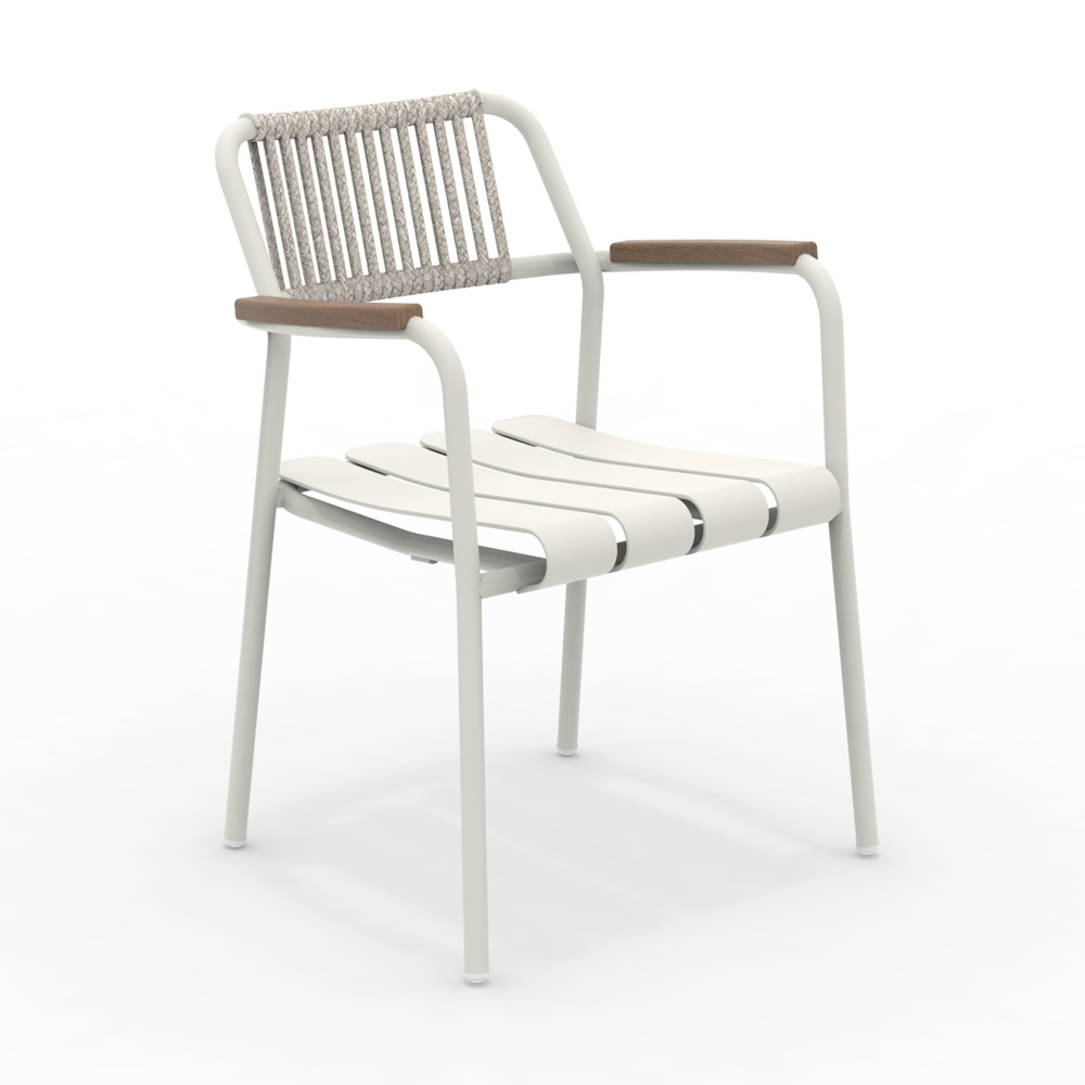 La struttura leggera ma robusta è studiata per offrire il miglior comfort, con seduta ergonomica e schienale sagomato in corda, che assicurano un appoggio comodo e rilassante. Le doghe in alluminio donano un aspetto dinamico e moderno, mentre la finitura aggiunge un tocco di eleganza e raffinatezza.