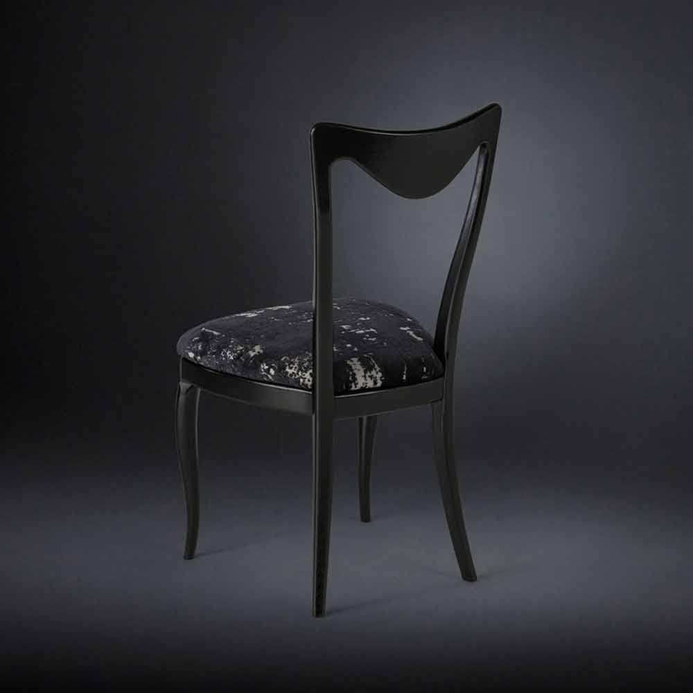 Frida è una fantastica sedia dal design semplice e originale in stile anni 50, adatta a qualsiasi arredamento, dal classico al moderno. Queste sedie sono composte da una struttura in legno verniciato nero opaco, complete di un'imbottitura in poliuretano ad alta densità e con seduta tappezzata con cinghie elastiche. Queste sedie "Frida" sono rivestite da un originale tessuto misto velluto color nero Cat. A, che gli dona un tocco di eleganza e raffinatezza senza tempo.