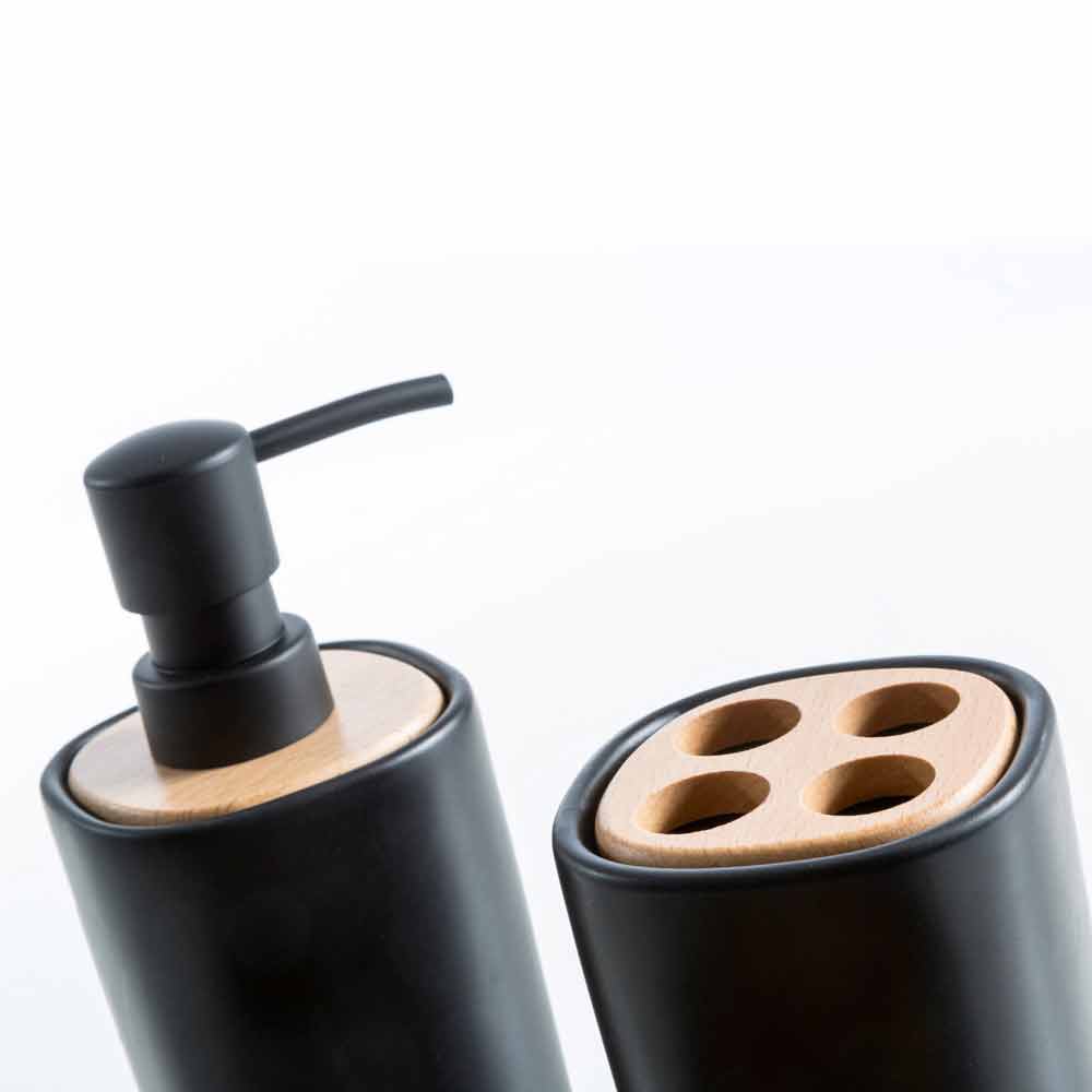 Set ds bagno di accessori moderni in ceramica e legno Carsoli