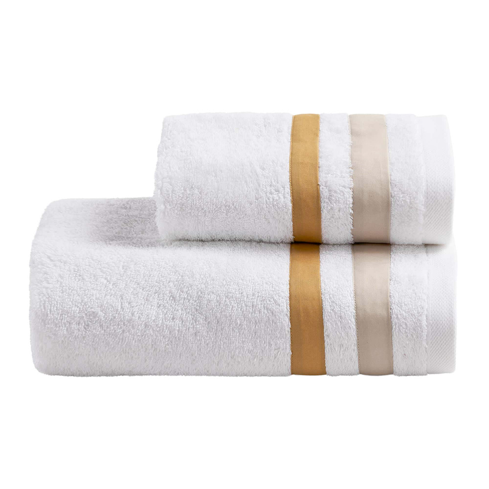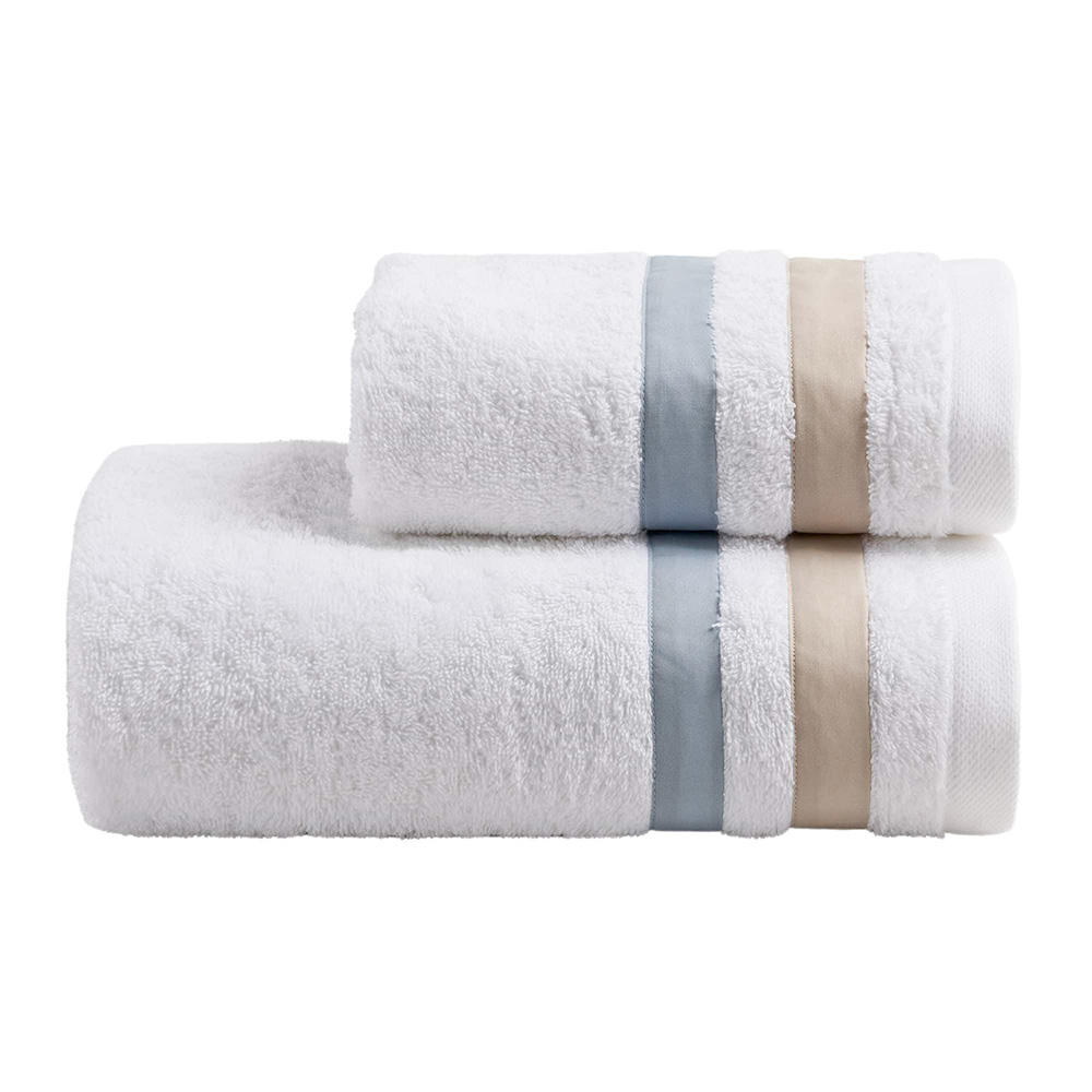 Set di asciugamano viso + asciugamano ospite in spugna di puro cotone con doppia balza in percalle di puro cotone