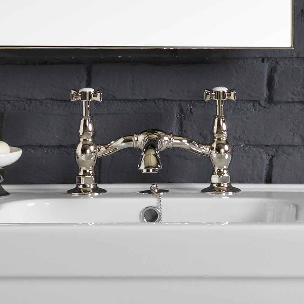 Per donare un ulteriore tocco di luce all'intera composizione fanno parte di Linear, due bellissimi rubinetti ponte con catenella, completi di sifoni e piletta.