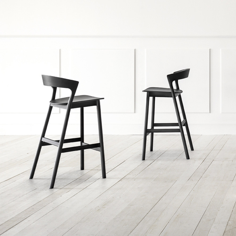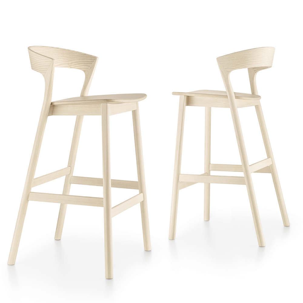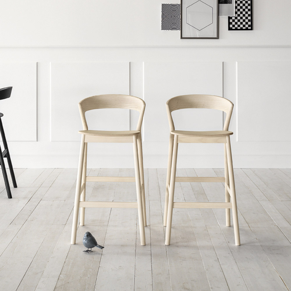 Sgabello realizzato in Italia ideale per banconi da cucina o tavoli alti con struttura in legno di frassino e seduta in multistrato. Versatile, discreto e semplice, questo complemento d'arredo ispirato al design scandinavo porta all'interno di ogni ambiente un tocco estremamente moderno e all'avanguardia grazie alle sue linee essenziali ma d'impatto. La seduta e lo schienale assicurano comfort e solidità, elementi fondamentali per una perfetta soluzione d'arredo che possa dimostrarsi funzionale e al tempo stesso capace di arricchire l'estetica della stanza ricoprendo così anche un ruolo puramente decorativo.