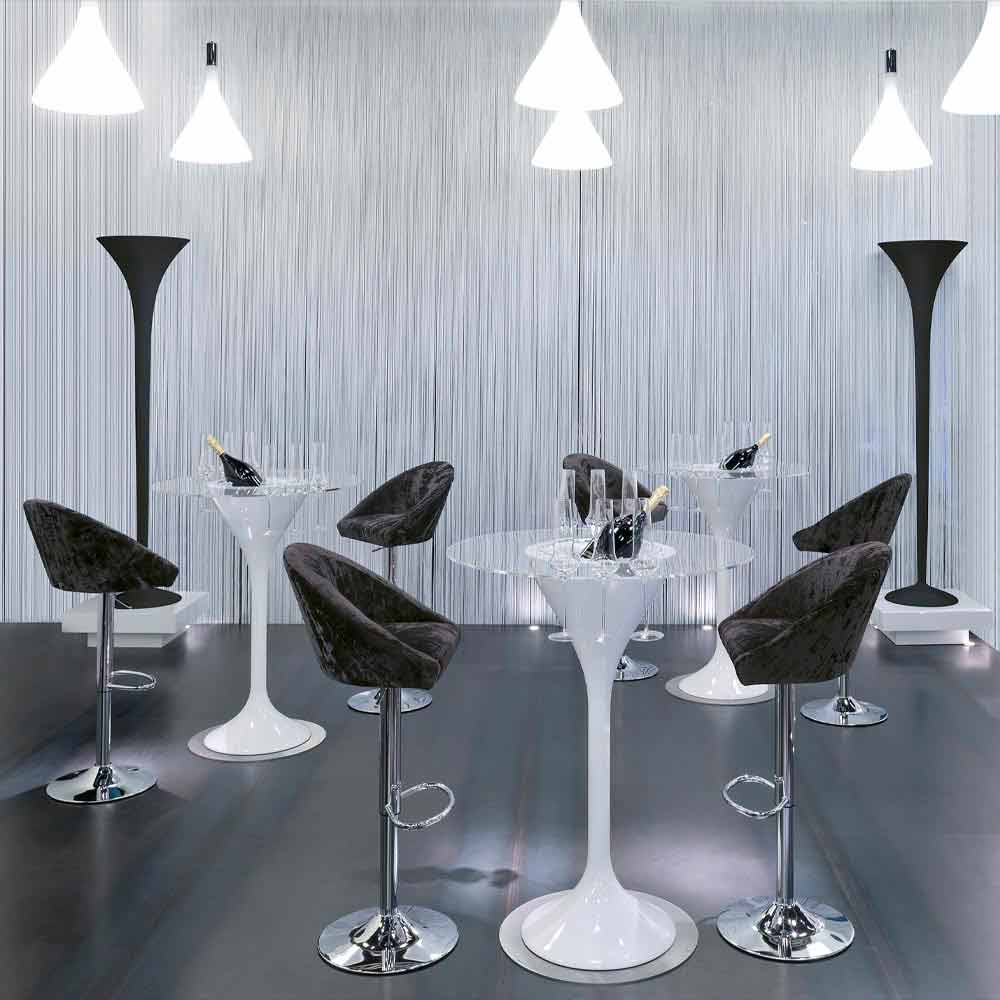 Sgabello in acciaio e velluto con alzata regolabile Made in Italy, alta qualità.