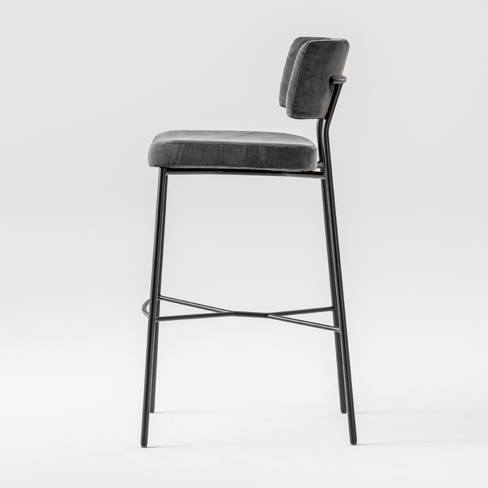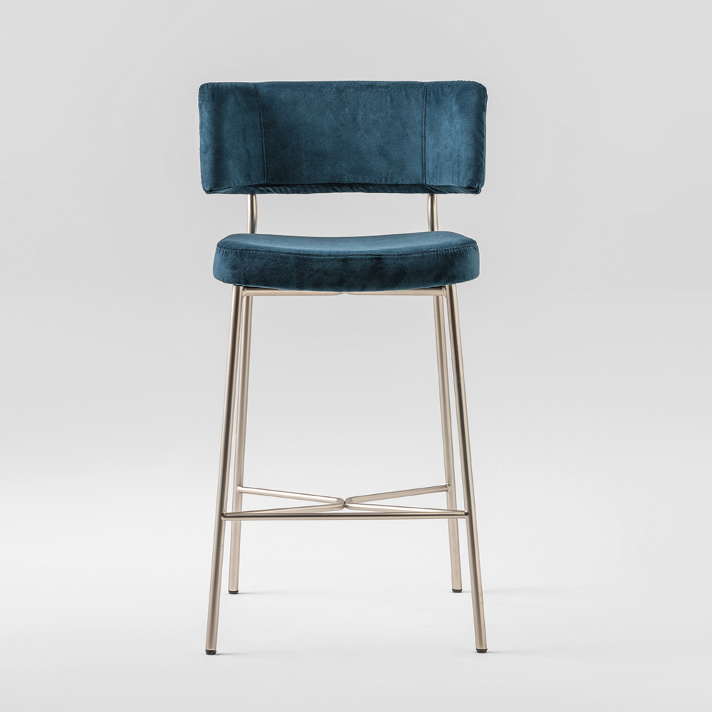 Sgabello da cucina pregiato in metallo verniciato e velluto Made in Italy.