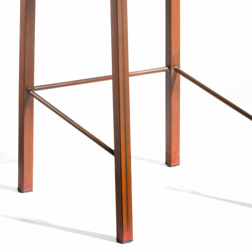 - gamba quadra in finitura corten con seduta rivestita in idrocordex testa di moro ( tessuto ad altissima resistenza all'usura, allo sfregamento, agli strappi ed alle abrasioni. Lavabile, impermeabile e resistente all'umidità )