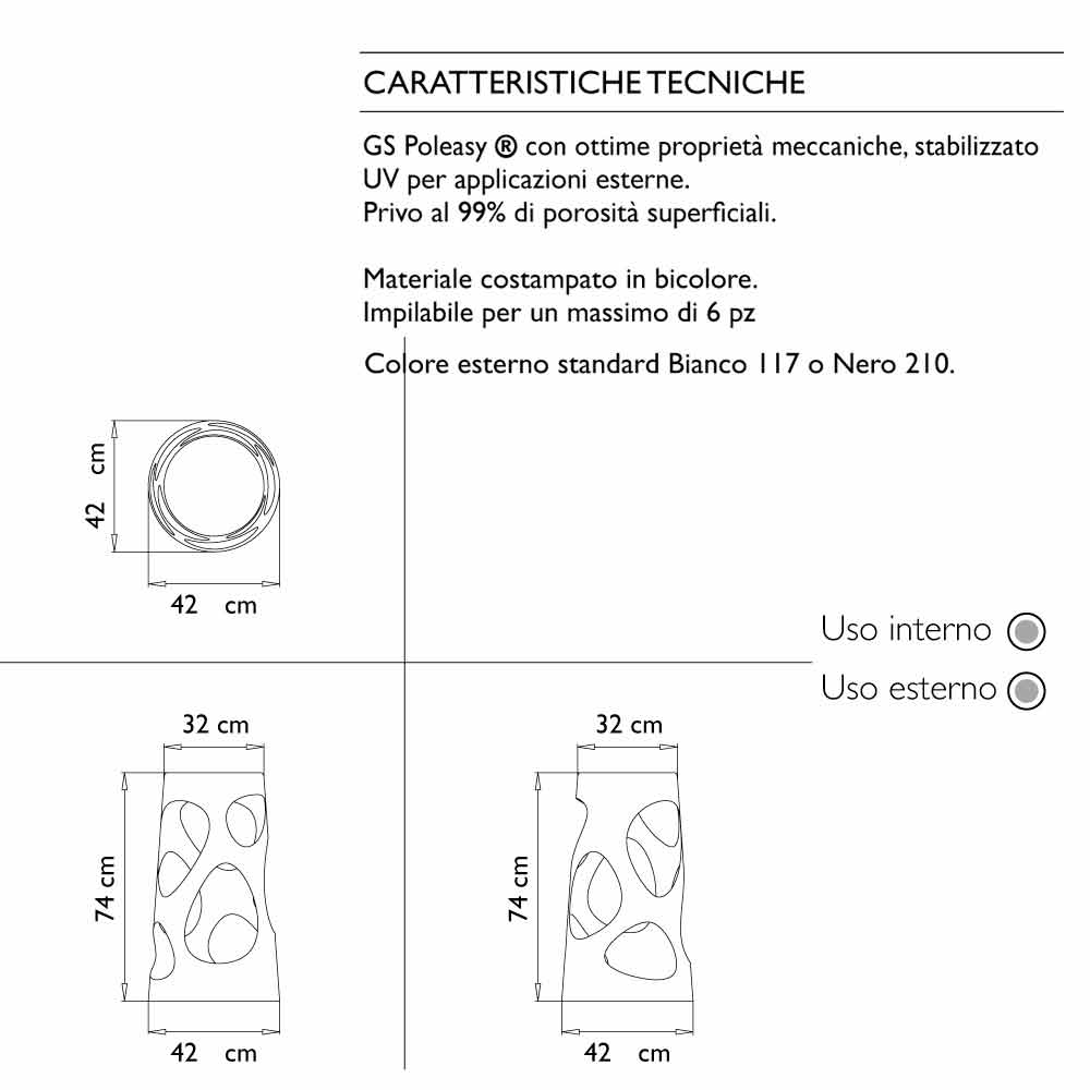 La vivacità di Liberty nasce dal gioco aperto dei vuoti e dei pieni, sulle superfici e sui volumi e innervato dalle vibrazioni cromatiche. Gli ampi fori nel tronco cavo esaltano, con la loro asimmetria, l'energia della superficie bicolore. E nel trionfo della sezione conica si allargano gli spazi: perfettamente impilabili, gli sgabelli LIbery occupano e liberano gli ambienti con un originale tocco di design.