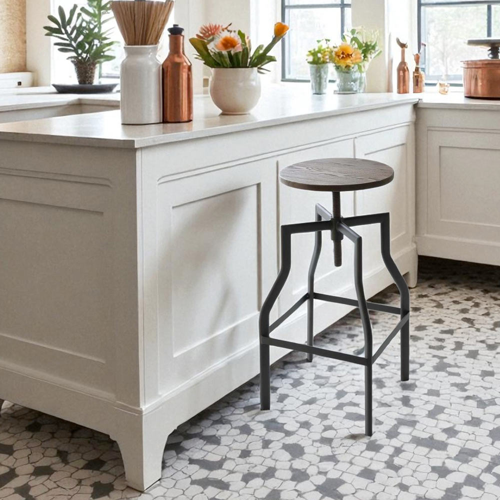 Si compone di una struttura in metallo verniciato nero industrial e un sedile in legno noce industrial regolabile in altezza fino ad un massimo di H76 cm. Assicurati il massimo dello stile e della comodità con questo sgabello.