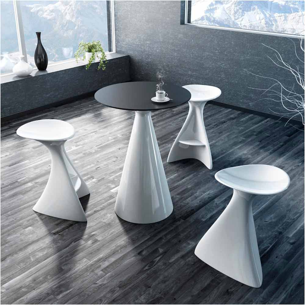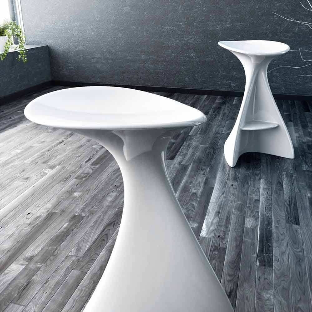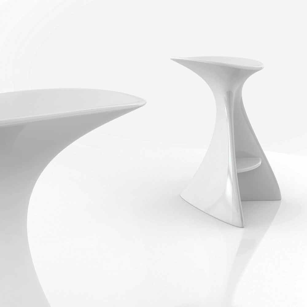 Sgabello monolitico realizzato in Solid Surface; caratterizzato da un design organico/biomorfico che richiama il mondo della fantascienza.
