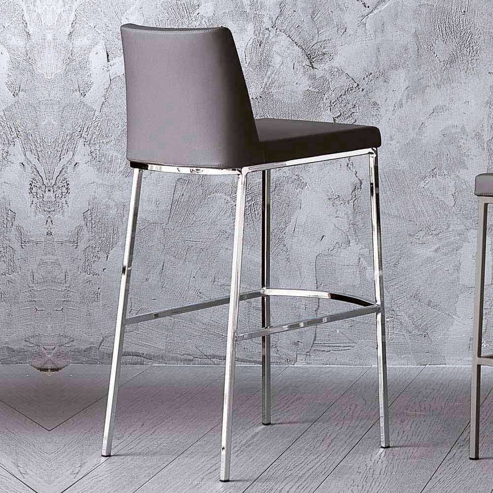 Sgabello con struttura in metallo e sedile schiumato rivestito in ecopelle titanio.