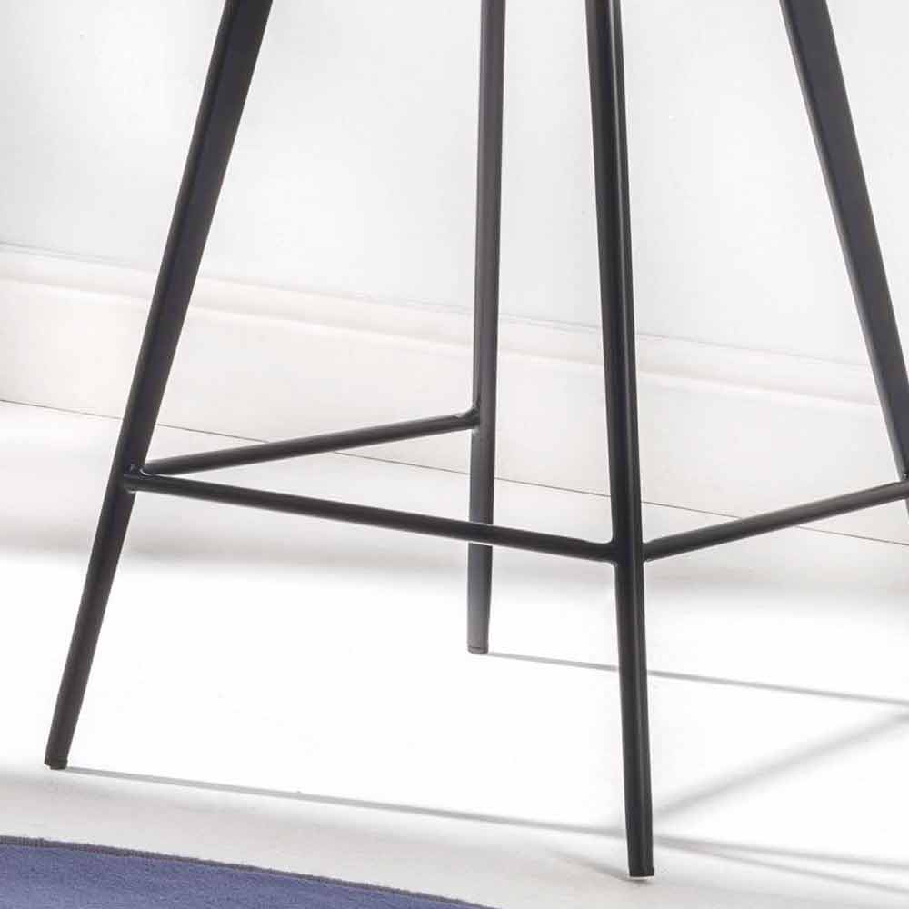 Sgabello di design con seduta in ecopelle effetto cuoio e base in metallo.