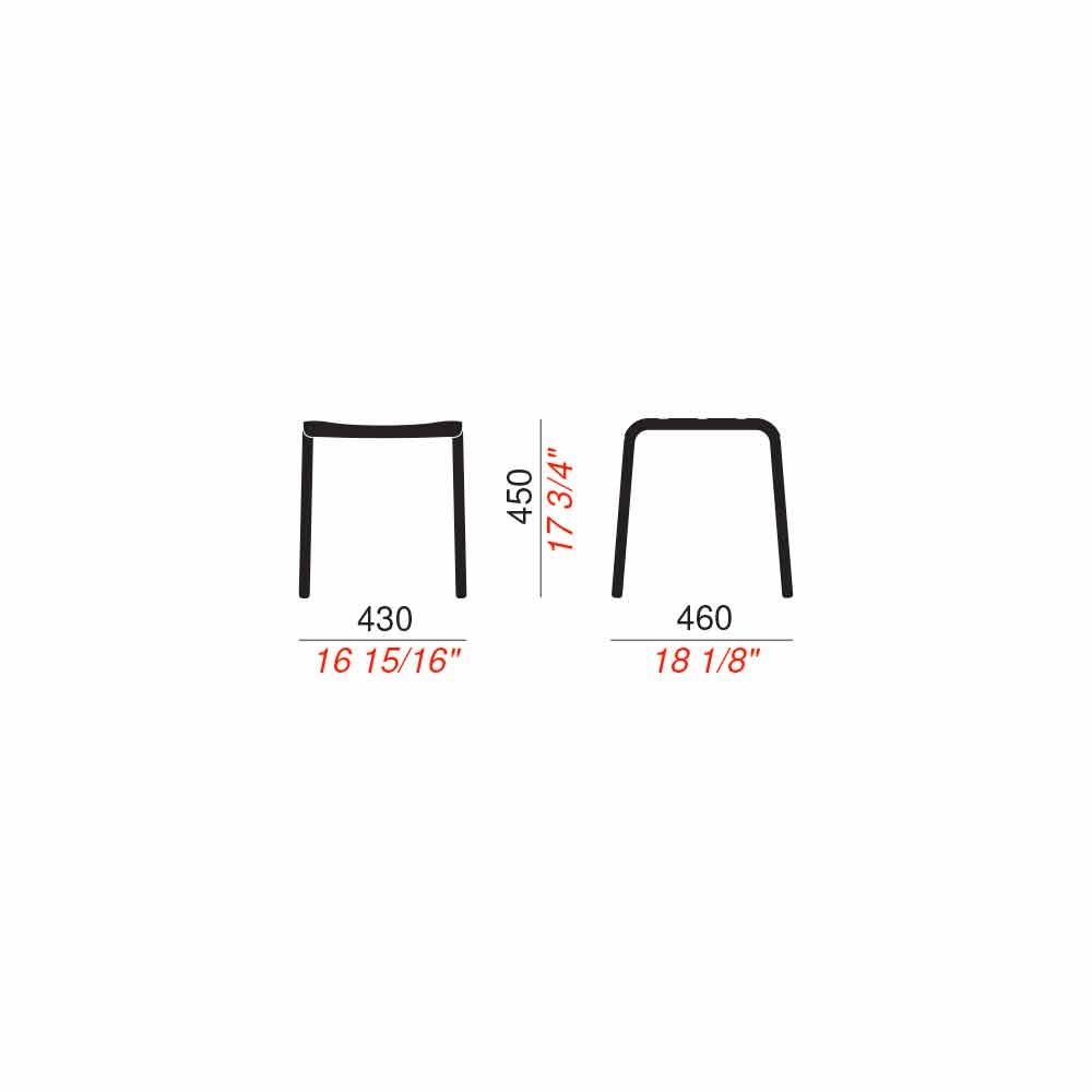 Sgabello basso in alluminio verniciato da esterno Made in Italy.