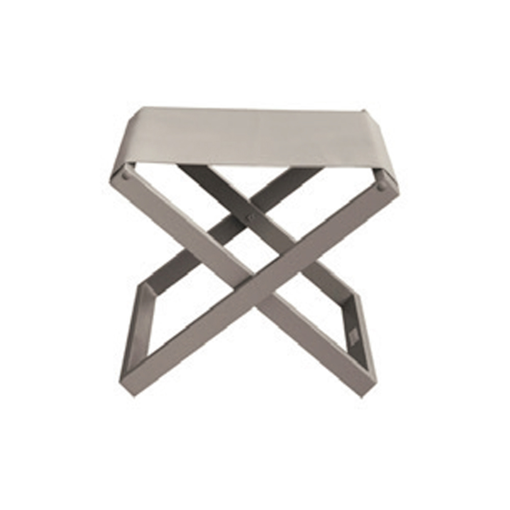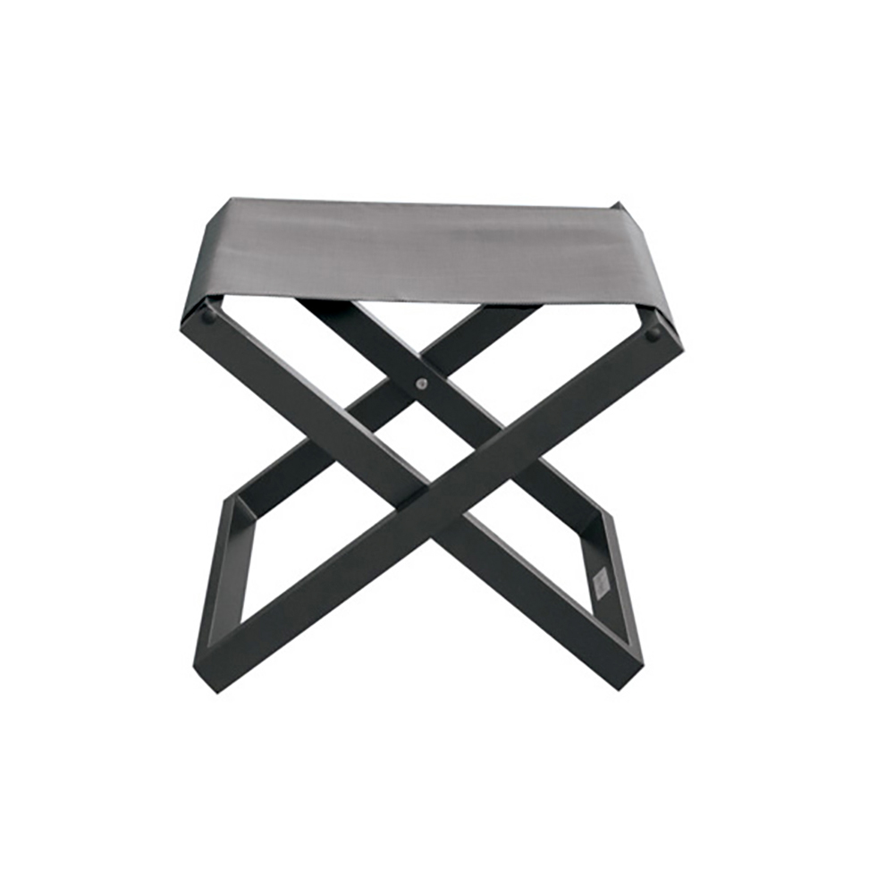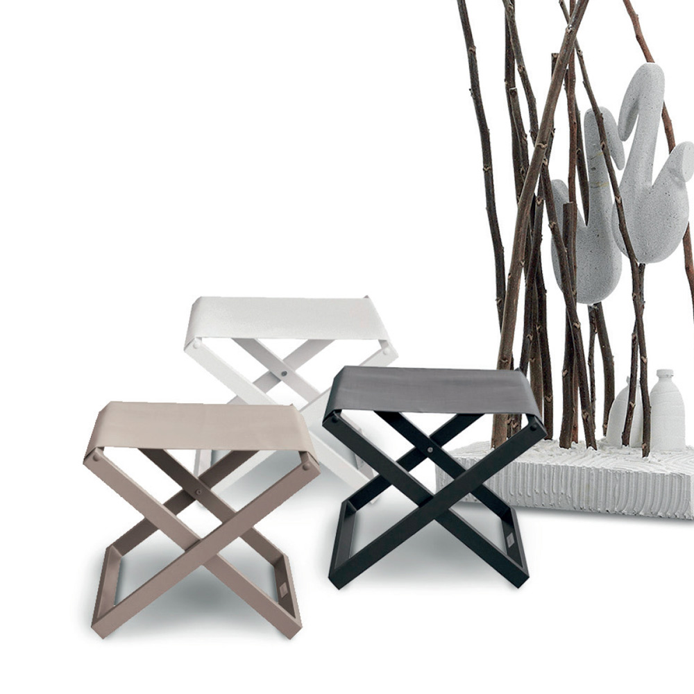 Sgabello basso da appoggio da esterno con struttura in alluminio verniciato a polvere e textilene.