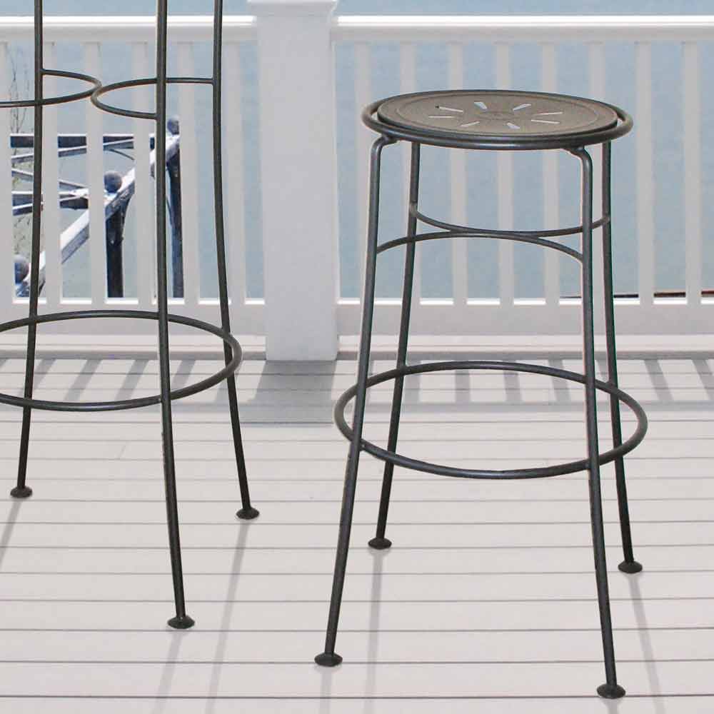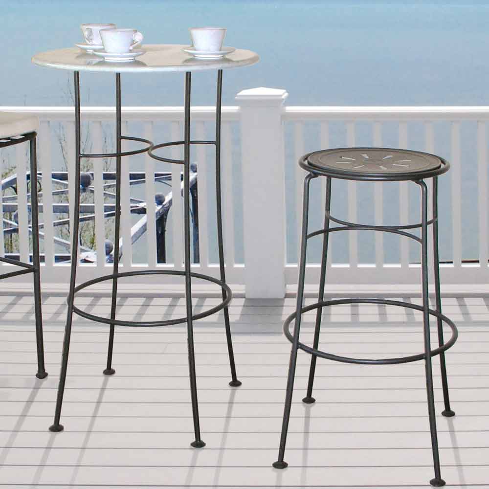 Sgabello alto da giardino in ferro verniciato realizzato artigianalmente in Italia.