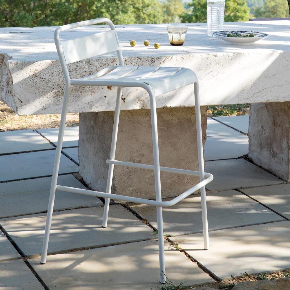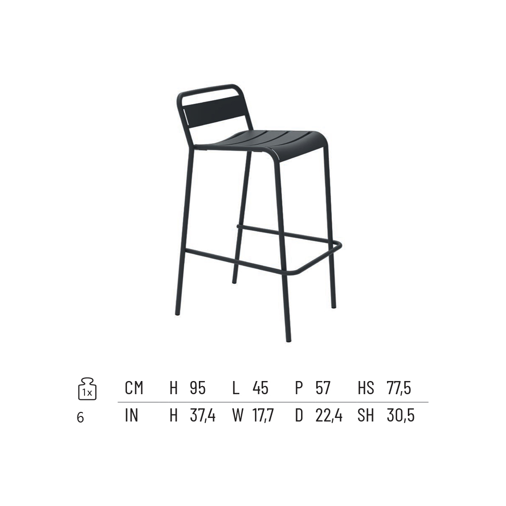 Sgabello impilabile da esterno in ferro zincato verniciato a polveri zincato colorato Made in Italy.