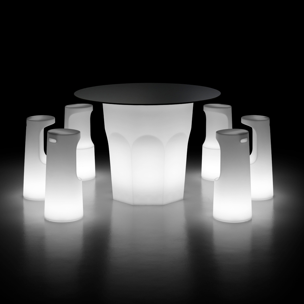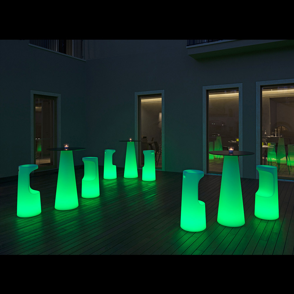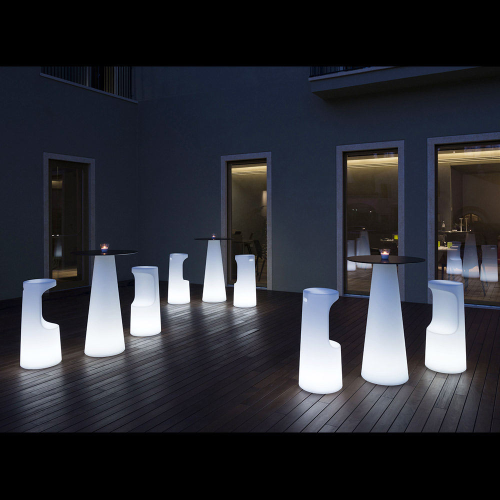Sgabello alto di design in polietilene da esterno con luce LED Made in Italy.