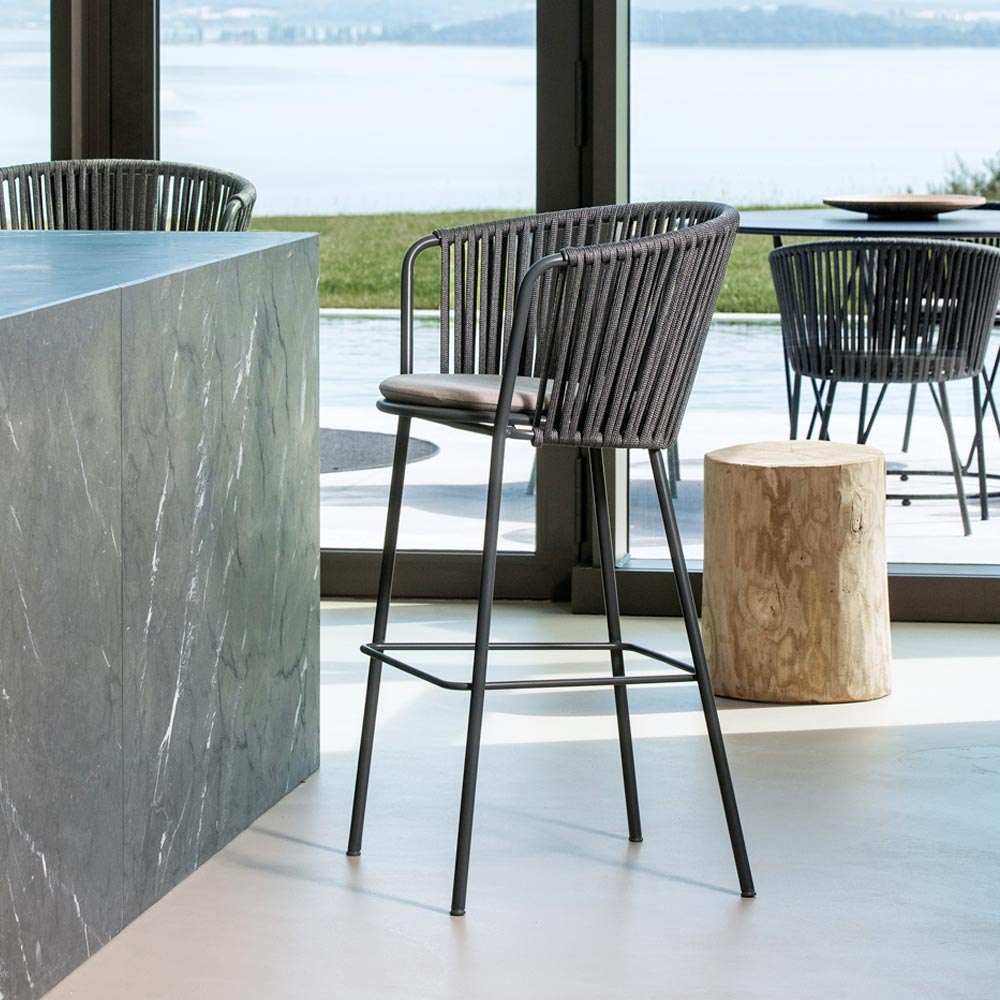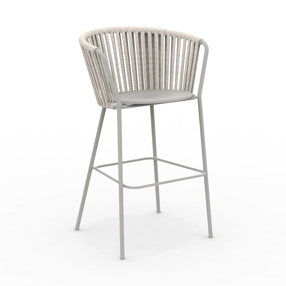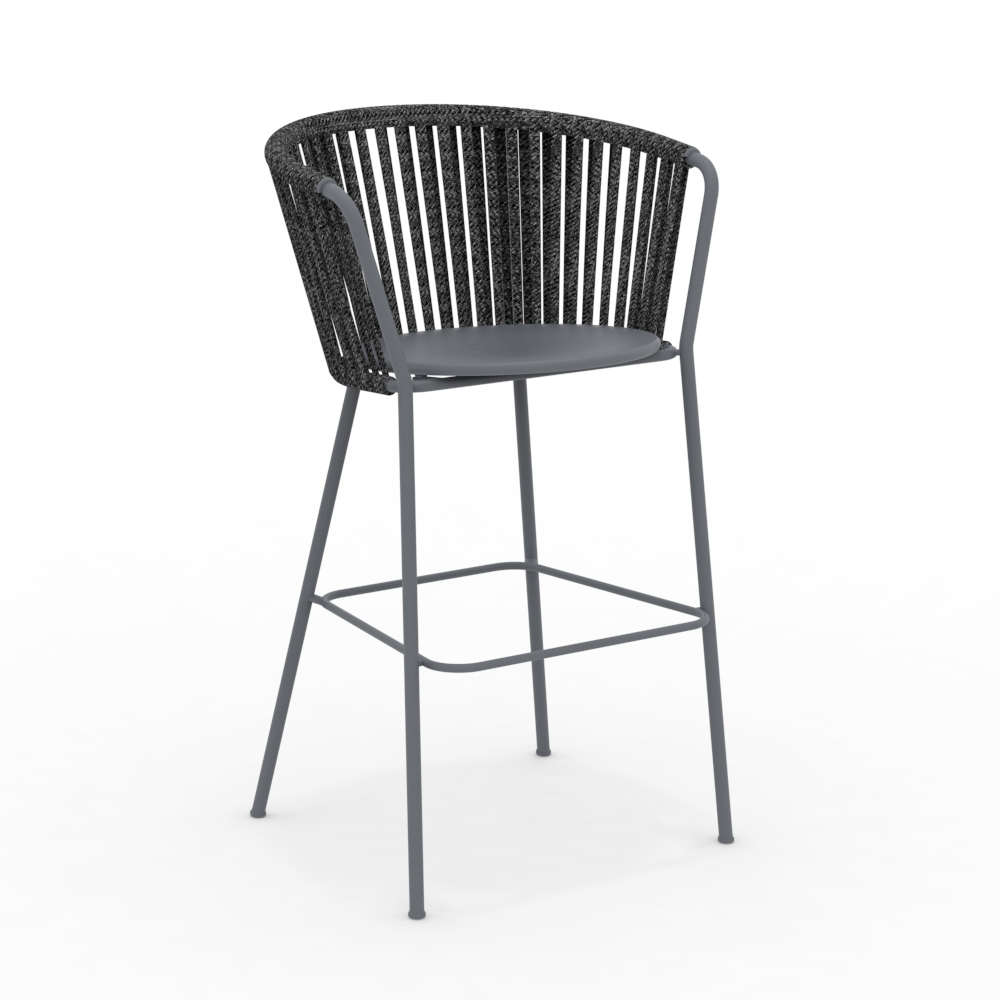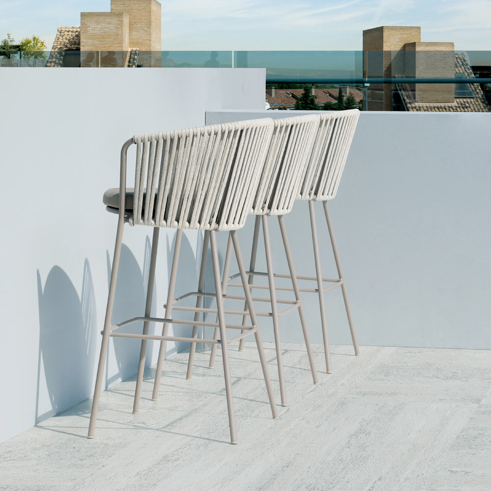 La struttura in acciaio inox garantisce solidità e resistenza agli agenti atmosferici, mentre l’intreccio in corda dona un tocco di leggerezza e raffinatezza, avvolgendo la seduta in un abbraccio di comfort. Il design ergonomico e le linee arrotondate assicurano un’esperienza di seduta piacevole e rilassante.