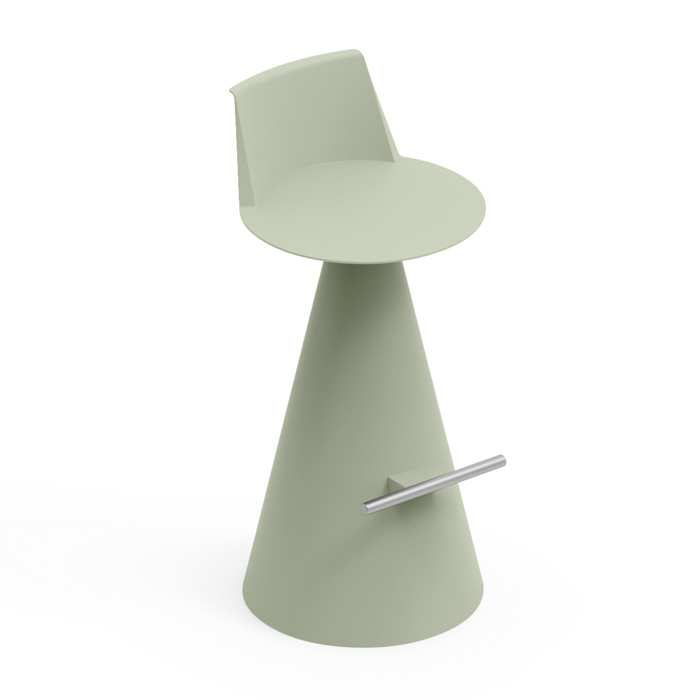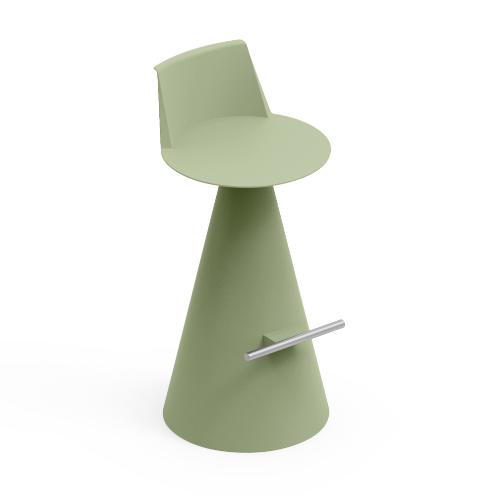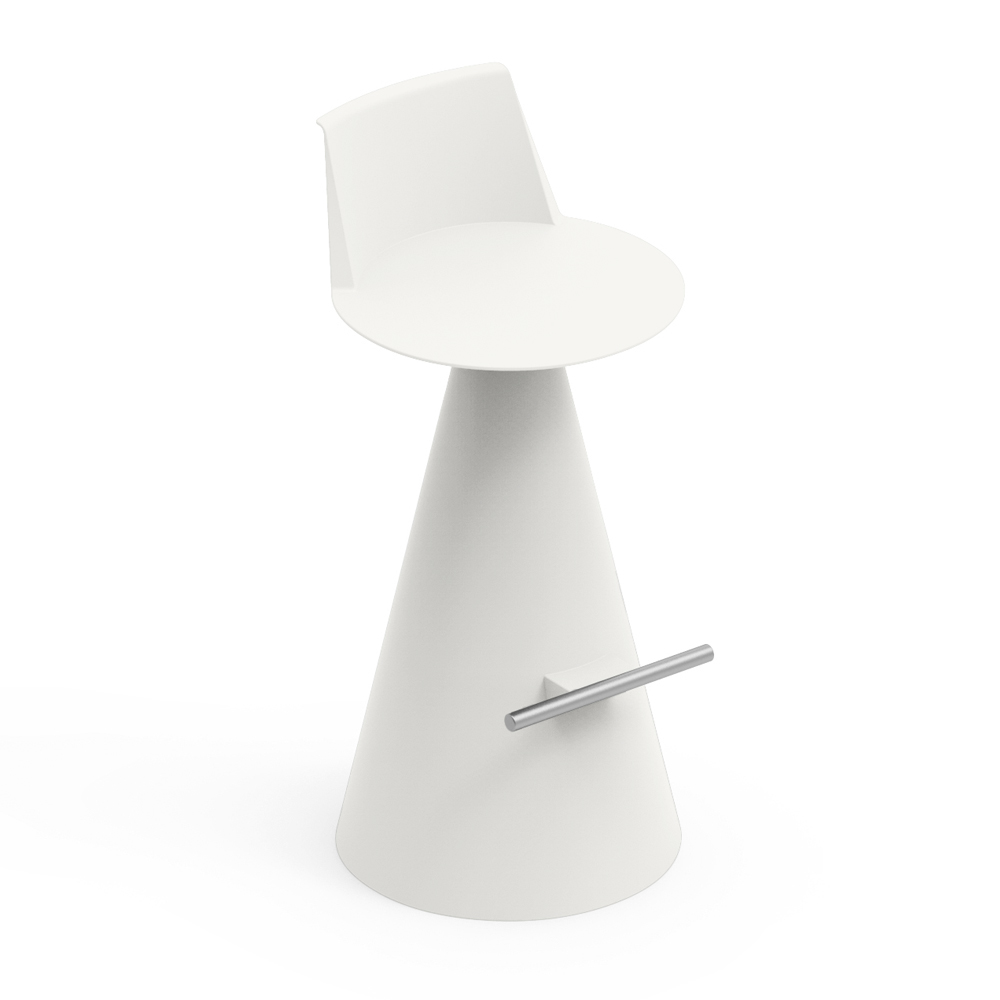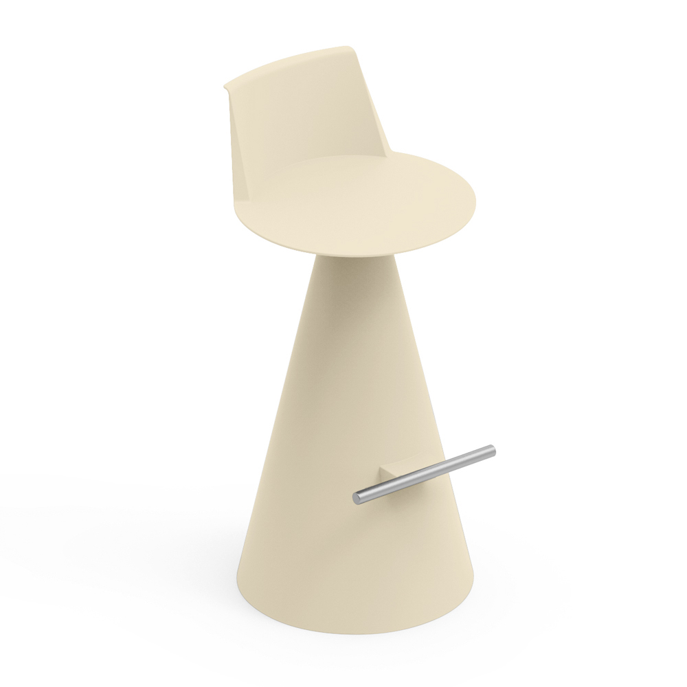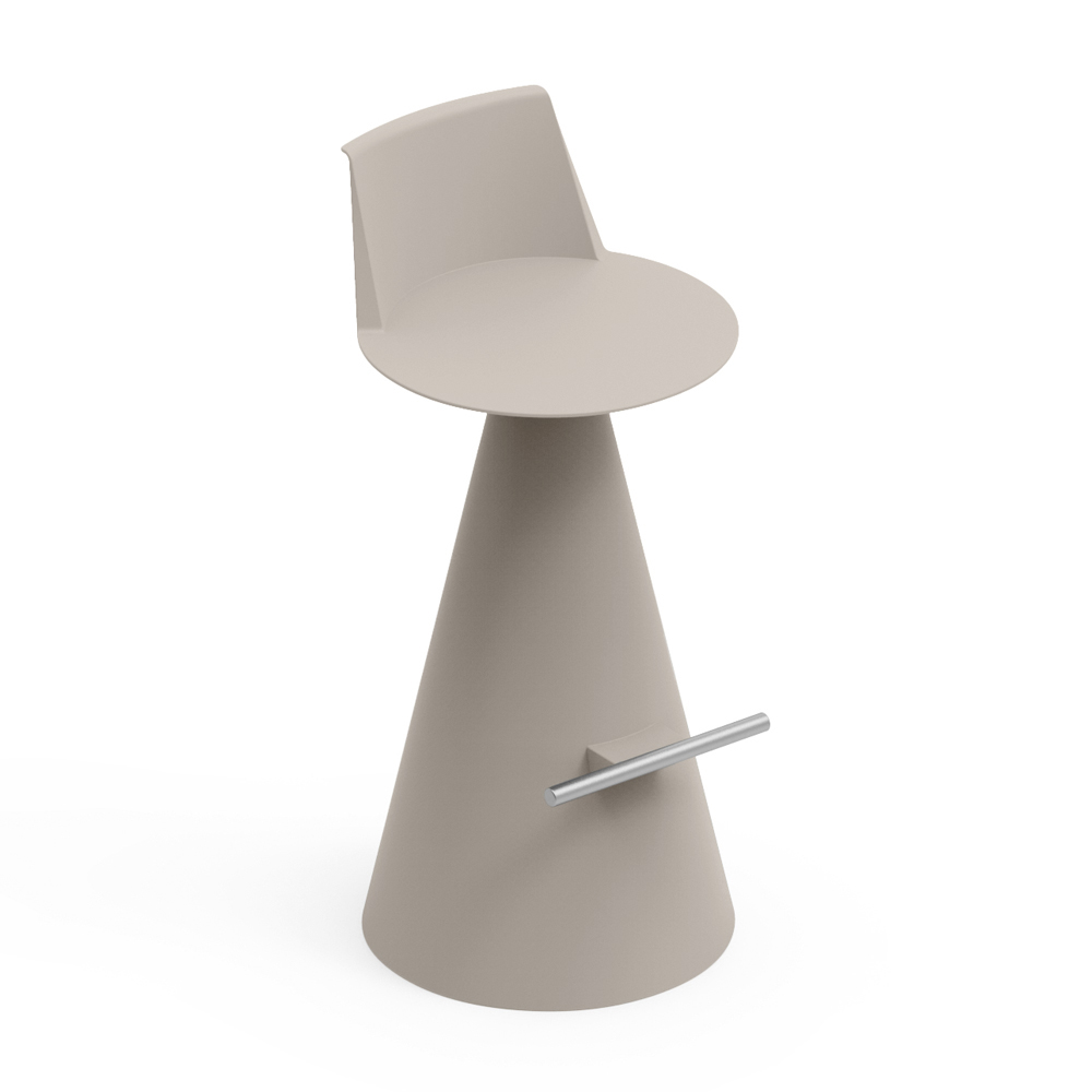 Questo sgabello moderno si distingue per il suo design unico e innovativo, combinando forma e funzione in un modo che è sia esteticamente piacevole che pratico. La base conica si espande verso l'alto in una seduta confortevole, con un supporto posteriore che offre una seduta rilassante e ergonomica.