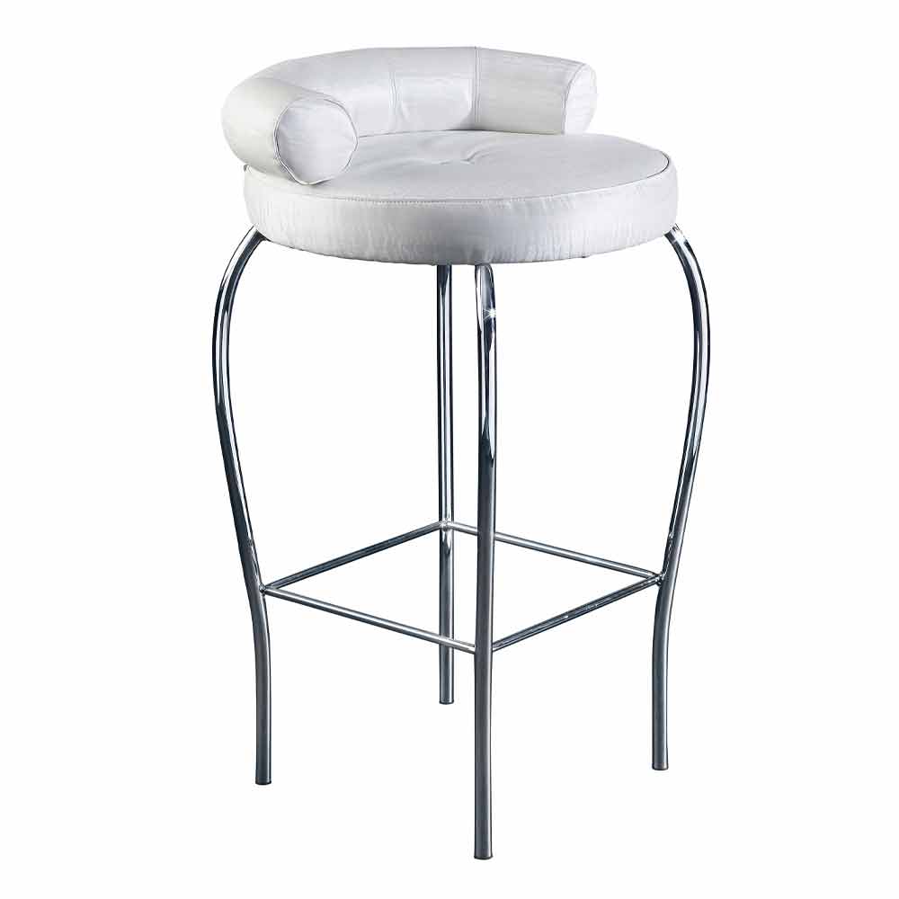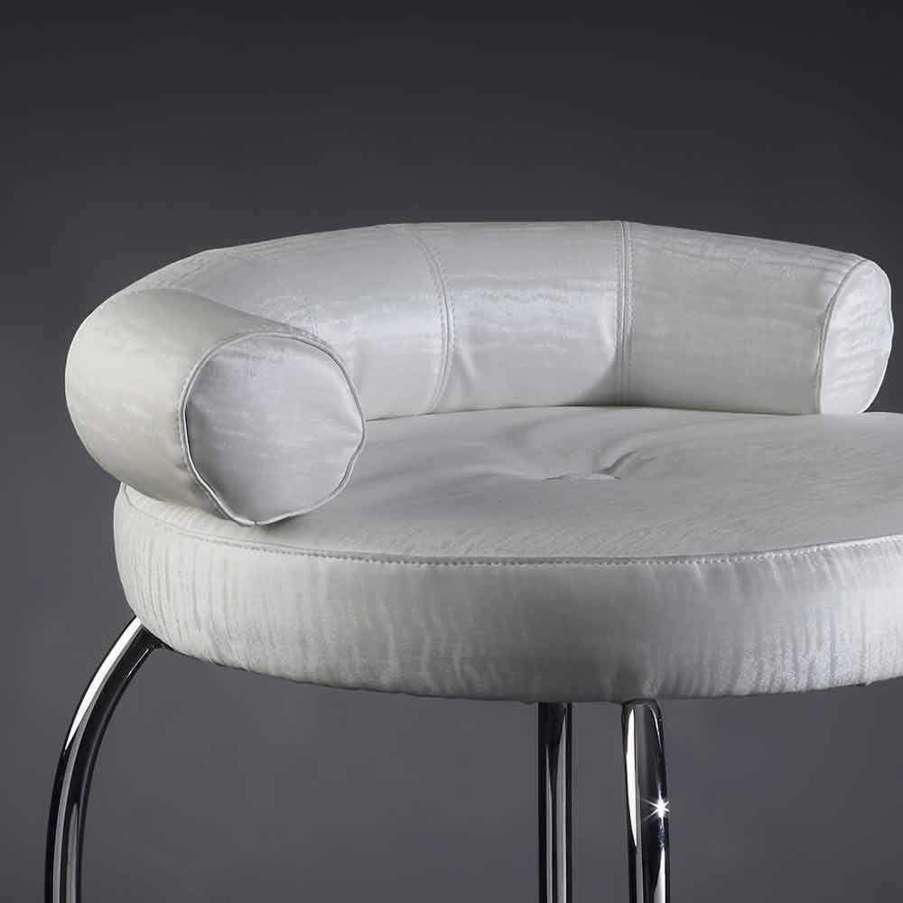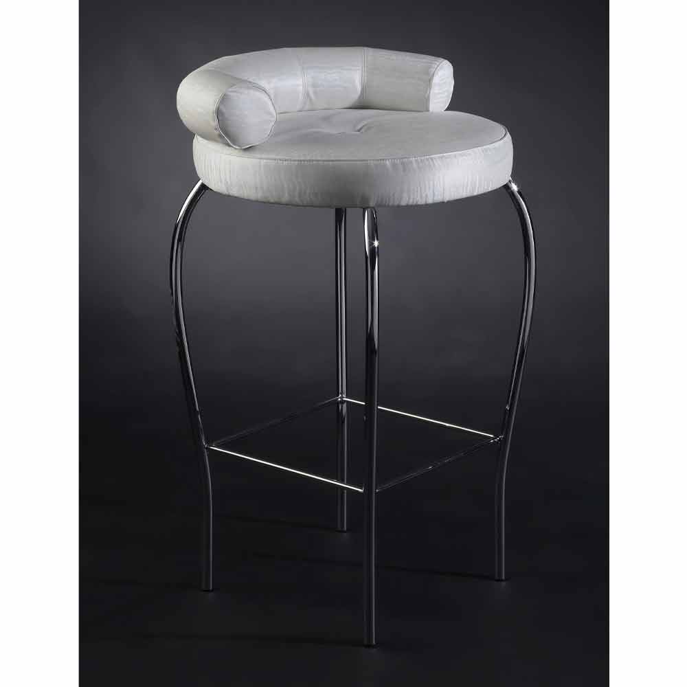 Sgabello alto in acciaio con seduta rivestita in tessuto Made in Italy, pregiato.