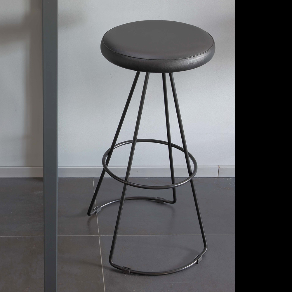 Sgabello da soggiorno realizzato in ecopelle e metallo