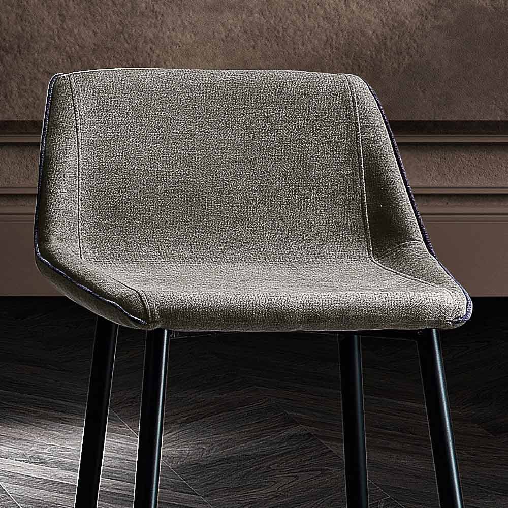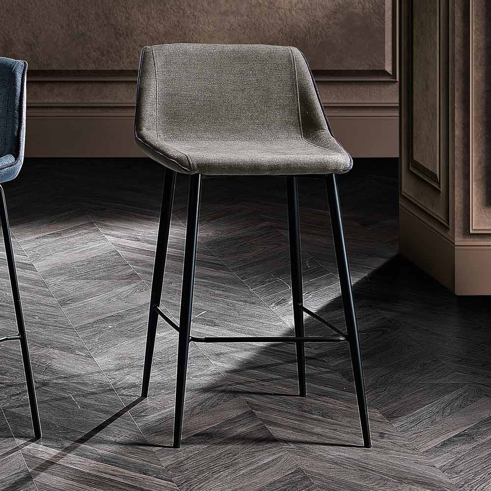 Sgabello da cucina realizzato in tessuto con struttura in tubo tondo di metallo (sp. 16mm) finitura nero opaco, interamente Made in Italy . Un complemento d'arredo dall'estetica elegante e di forte impatto visivo capace di assicurare una seduta accogliente e confortevole arricchendo al tempo stesso l'atmosfera della sala da pranzo o della cucina. Il design risulta così funzionale e senza tempo, adatto a coloro che vogliono creare uno spazio domestico accogliente dalle nuance delicate.