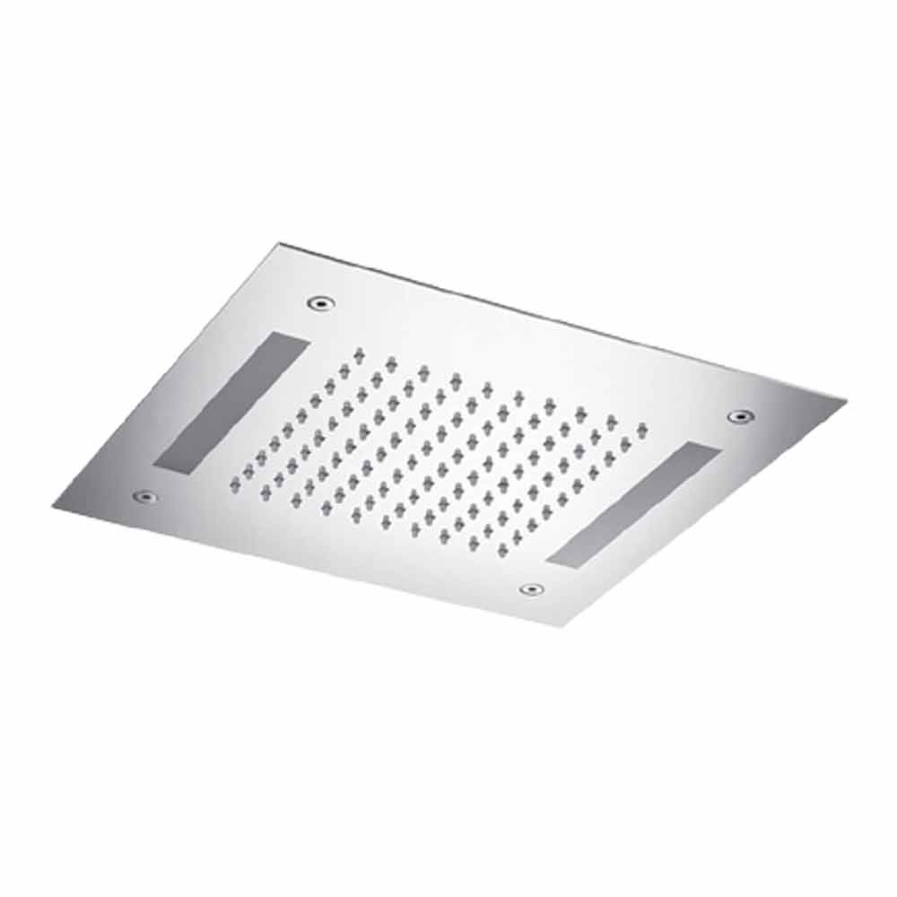 Soffione doccia quadrato di in acciaio inox con cromoterapia, articolo pregiato Made in Italy.