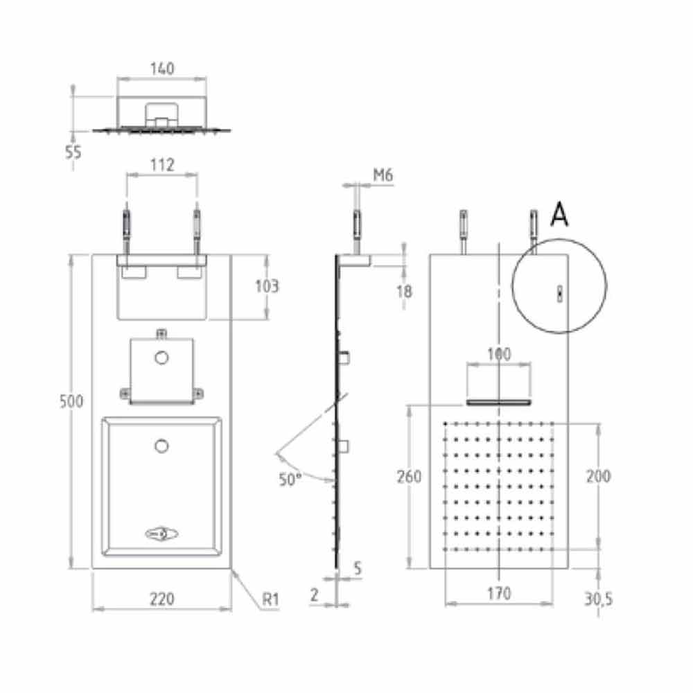 - soffione doccia da parete in acciaio ultraslim anticalcare;
