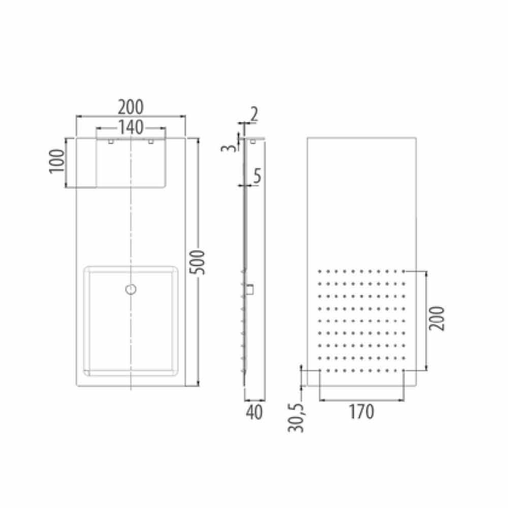 Soffione doccia rettangolare in acciaio ultraslim con doppio getto Made in Italy.